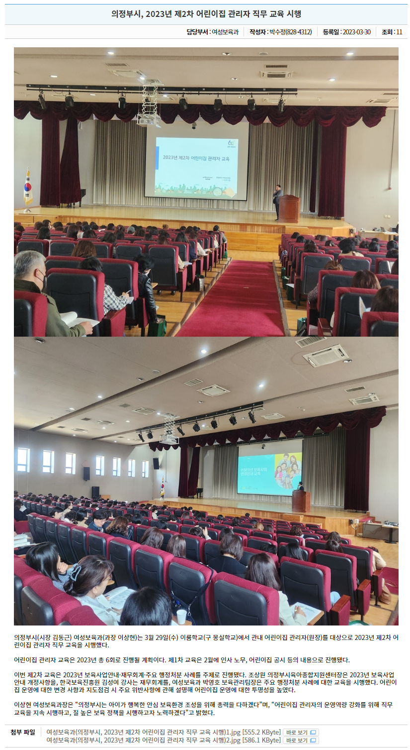 의정부시, 2023년 제2차 어린이집 관리자 직무 교육 시행 > 보도자료