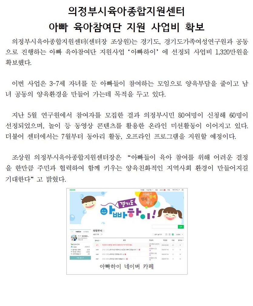 아빠 육아참여단 지원 사업비 확보 > 보도자료