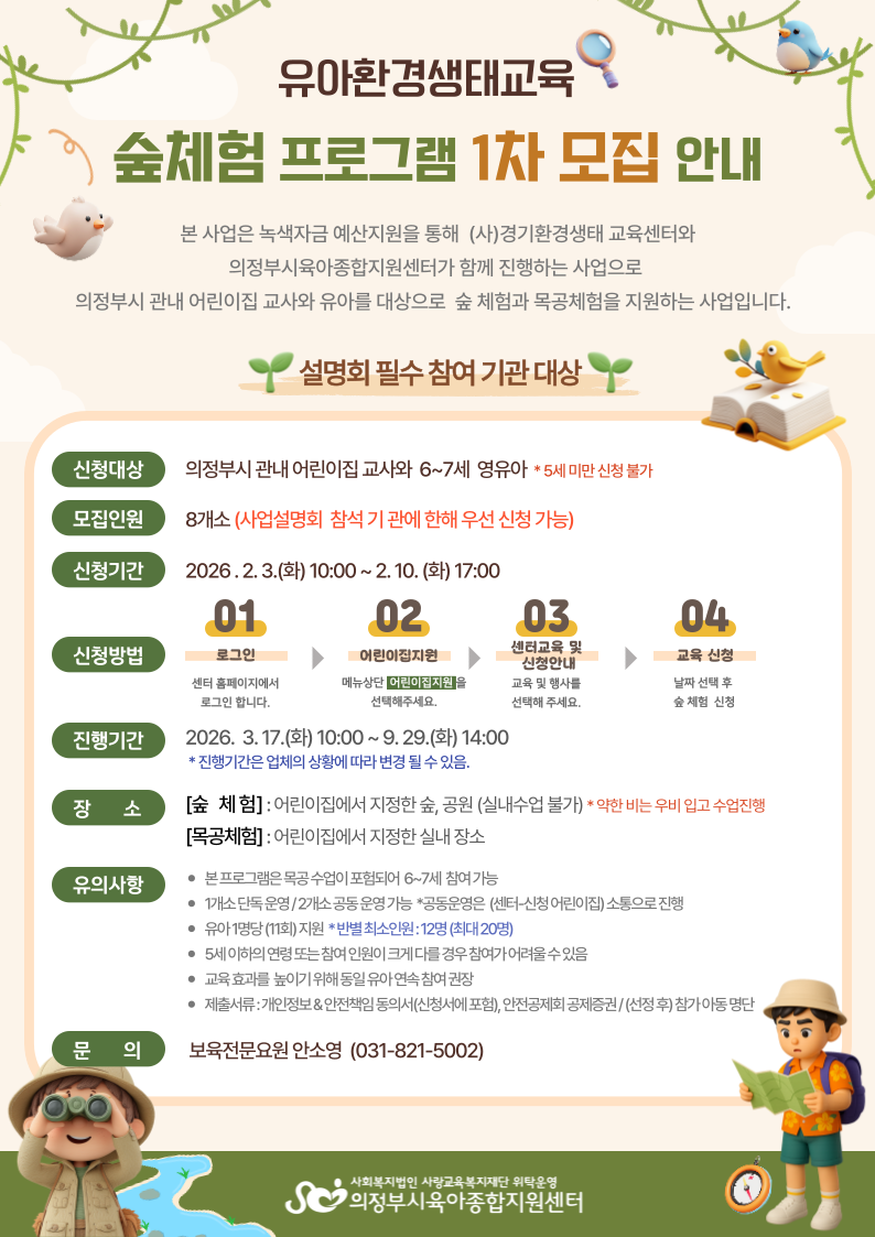 | 접수일정 | 2026-02-03 10:00 ~ 2026-02-10 14:00 | 장소 | 어린이집에서 지정한 장소(공원 등) | ||