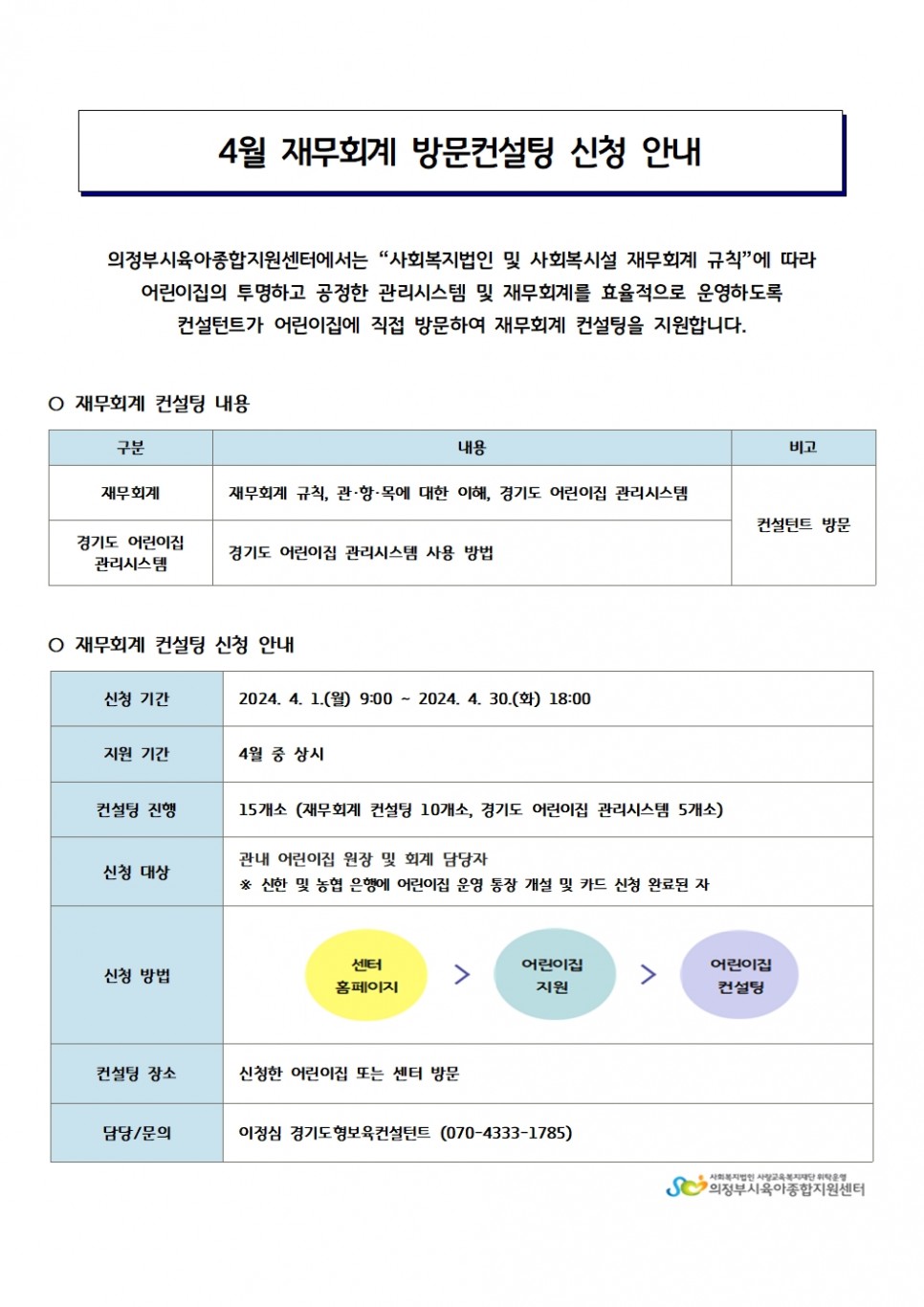- HOME > 기관지원 > 어린이집 컨설팅 > 컨설팅 신청