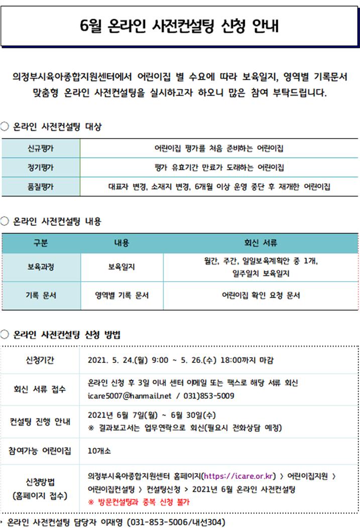 - HOME > 기관지원 > 어린이집 컨설팅 > 컨설팅 신청