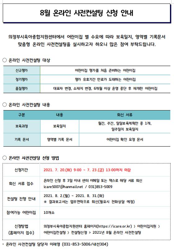 * 사회적 거리두기 4단계 격상으로 어린이집 방문컨설팅은 일정이 연기되었습니다.