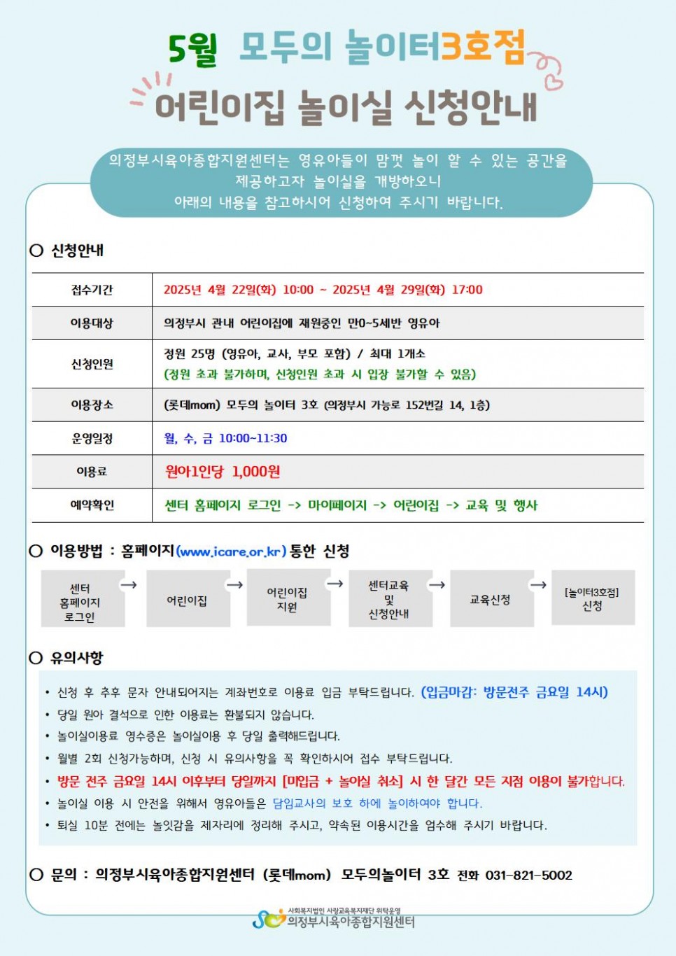 [롯데mom 모두의놀이터 3호점] 2025년 5월 놀이실 신청안내