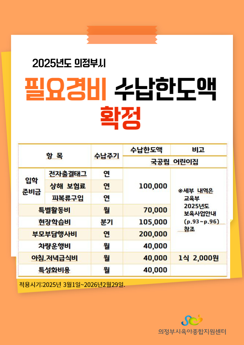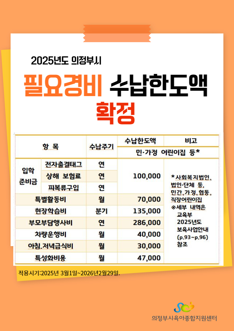 2025년 의정부시 어린이집 필요경비 수납한도액 알림 > 공지사항
