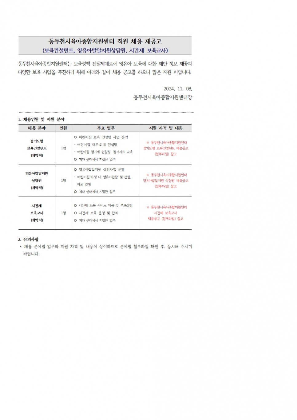 [동두천시육아종합지원센터] 직원 채용 공고