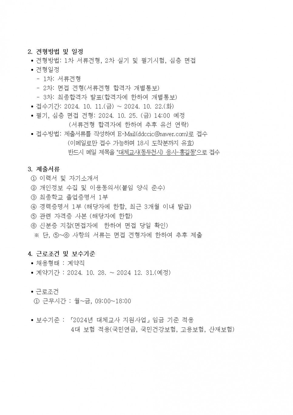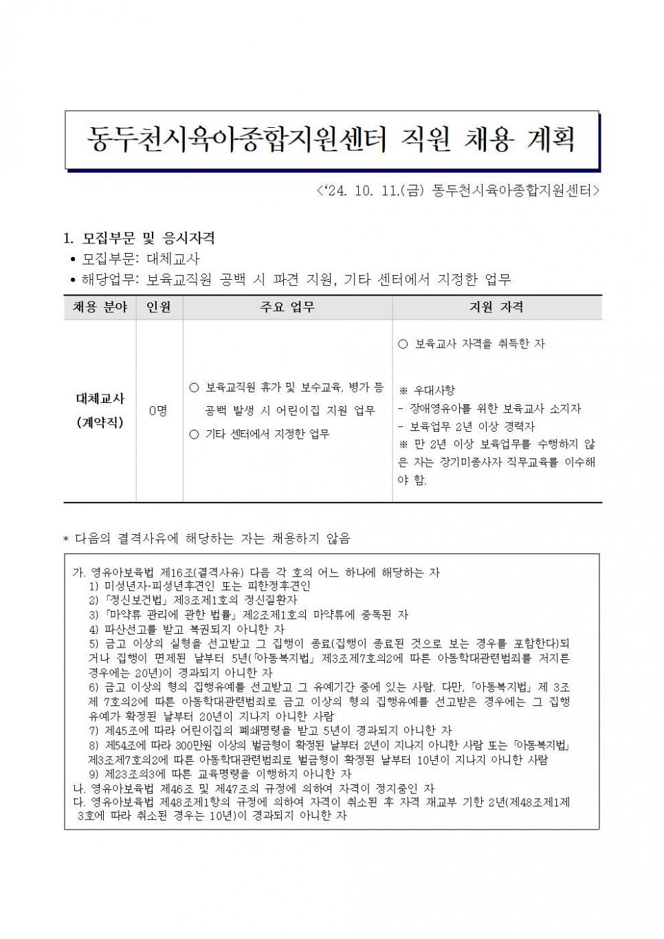 [동두천시육아종합지원센터] 직원(대체교사) 채용 공고