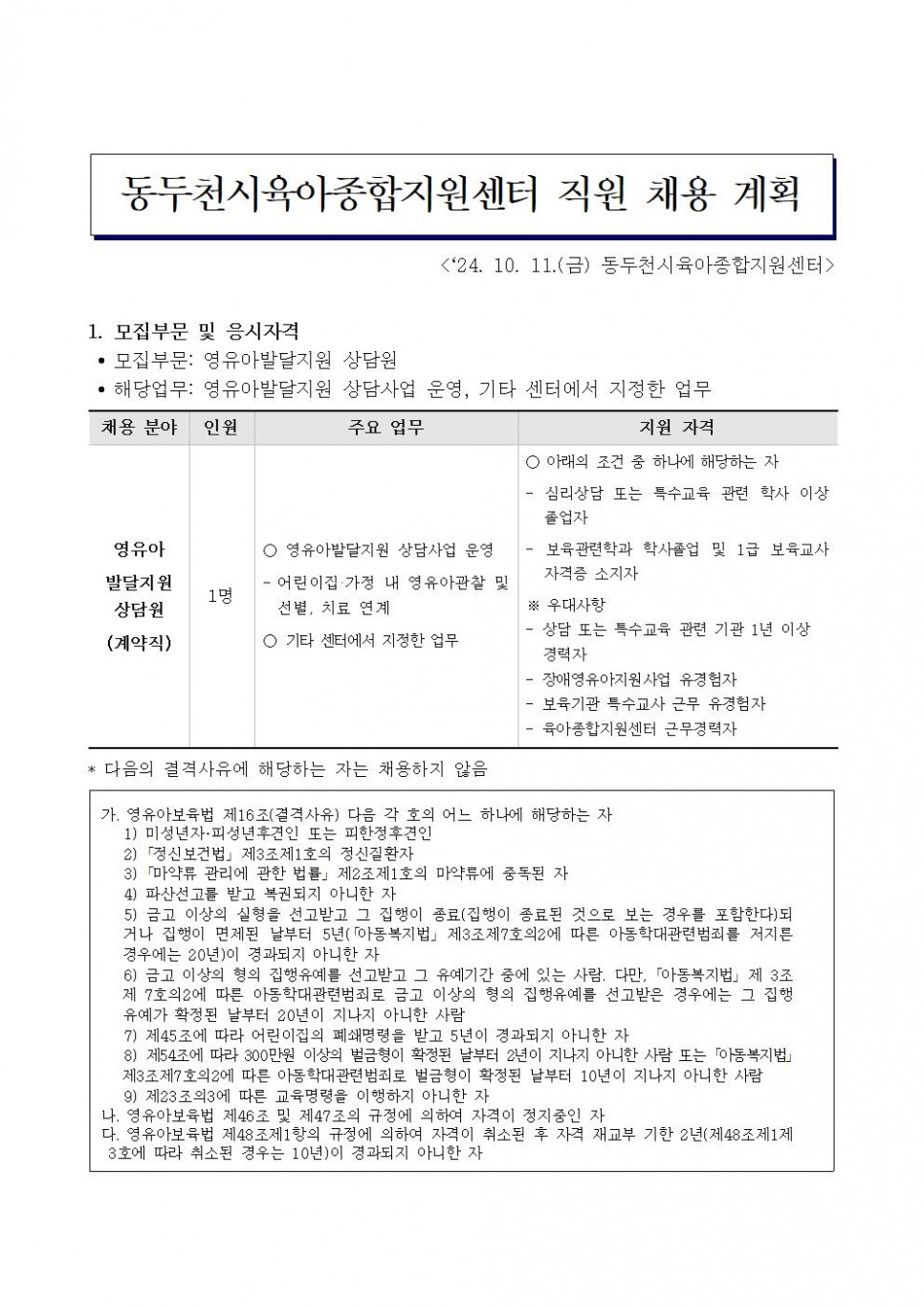 [동두천시육아종합지원센터] 직원(영유아발달지원상담원) 채용 공고 페이지 정보 작성자 의정부센터 댓글 0건 조회 994회 작성일 2024-10-16 15:17 첨부파일 동두천시육아종합지원센터 개인정보 수집이용동의서 4.hwp (55.0K) 9회 다운로드 | DATE : 2024-10-16 15:17:25 본문 [동두천시육아종합지원센터] 직원(영유아발달지원상담원) 채용 공고 목록 이전글[아이사랑놀이터 신규 명칭 투표] 24.10.19 다음글[동두천시육아종합지원센터] 직원(시간제 보육교사) 채용 공고 24.10.16