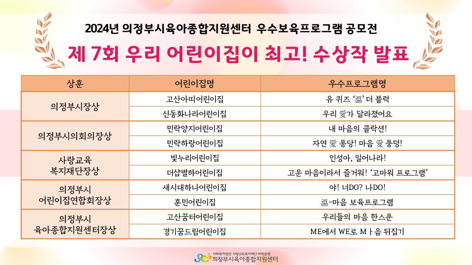 2024년 의정부시육아종합지원센터 우수보육프로그램 공모전 - 제7회 우리 어린이집이 최고! 수상작 발표