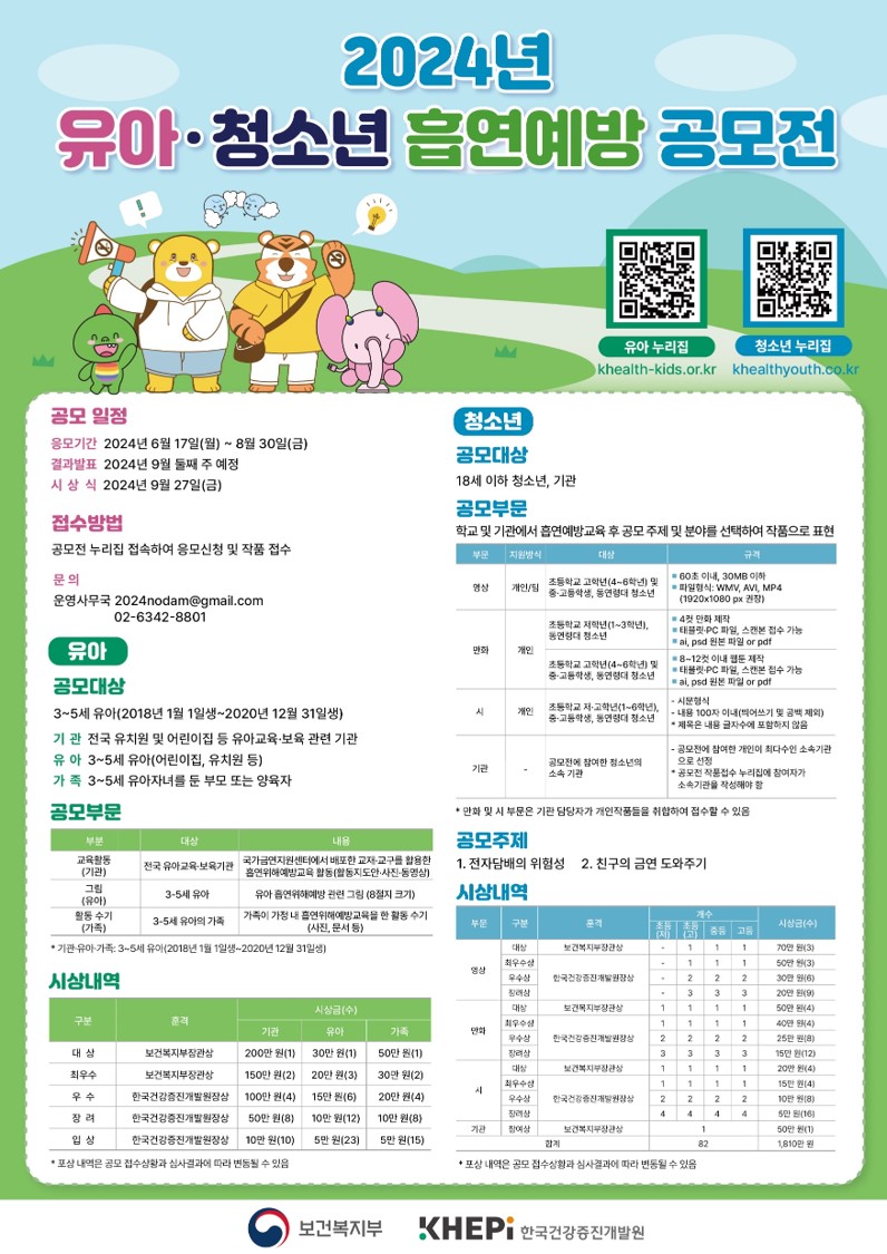 [중앙육아종합지원센터] 2024년 유아·청소년 흡연예방 공모전