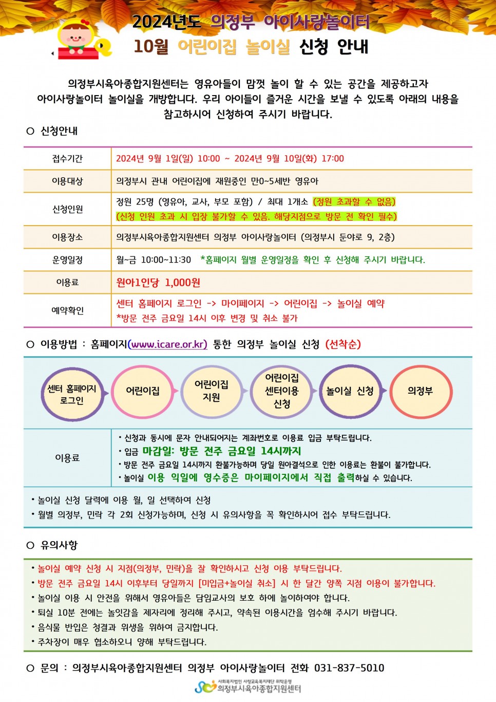 [의정부, 민락] 2024년 10월 놀이실 신청안내