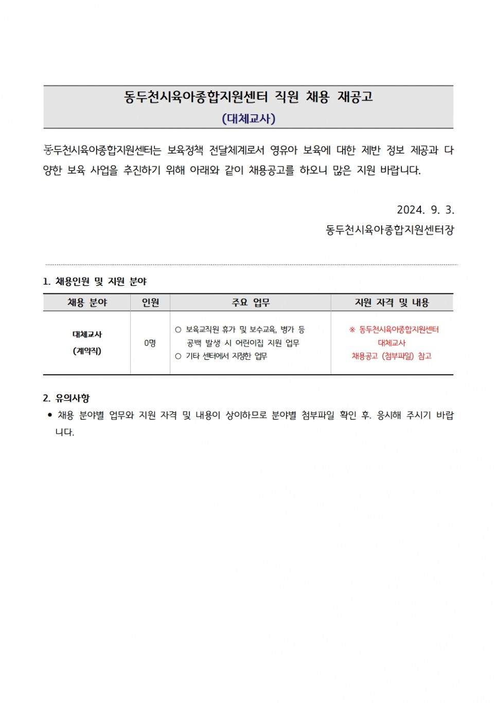 [동두천시육아종합지원센터]직원 채용 공고_대체교사 > 공지사항