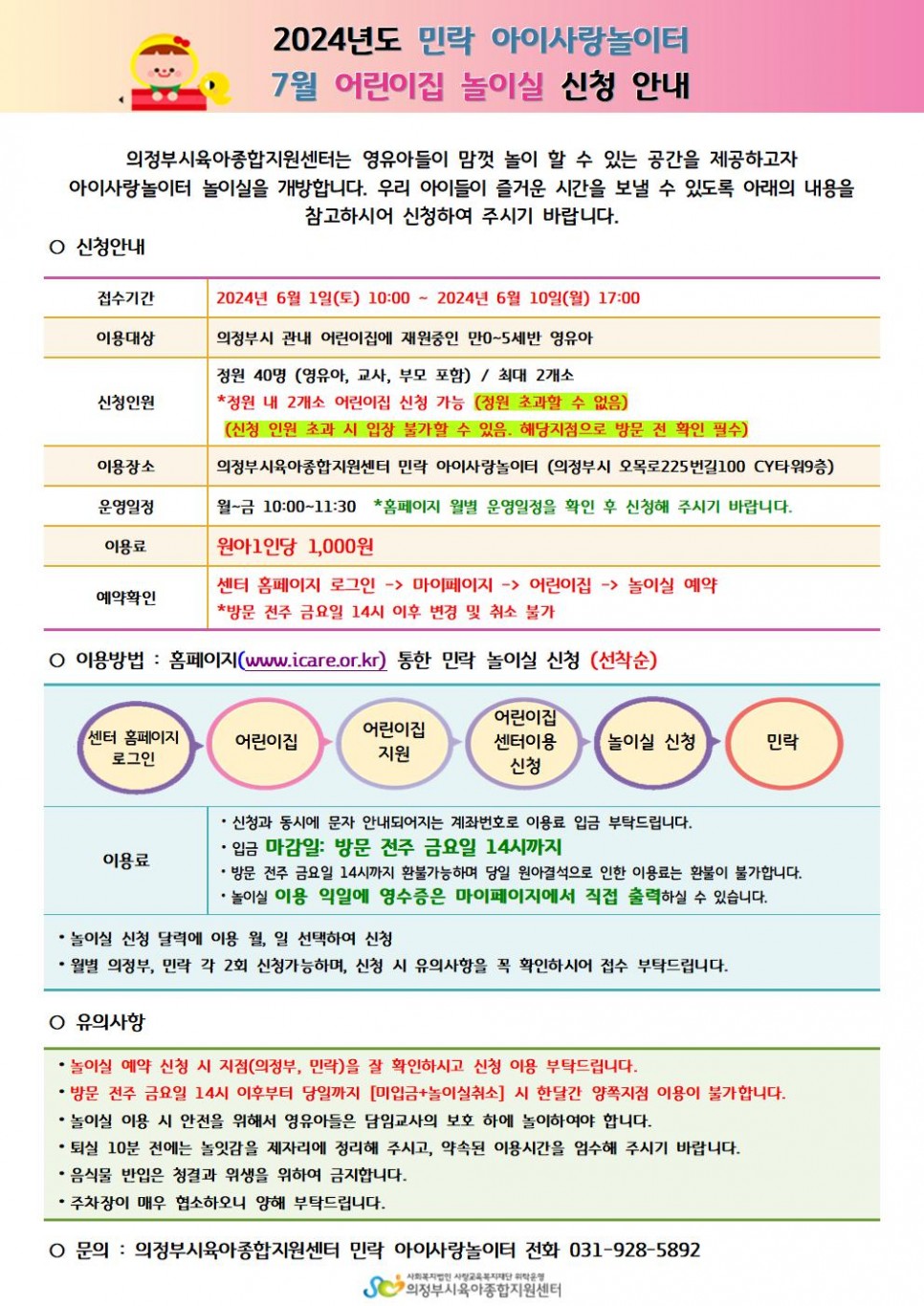 [의정부, 민락] 2024년 7월 놀이실 신청안내 > 공지사항