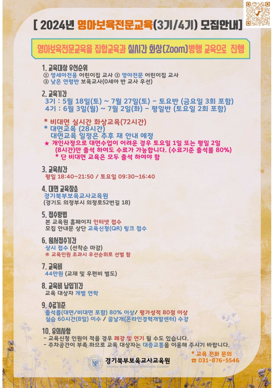 영아보육전문과정(3기/4기) 모집안내 > 공지사항