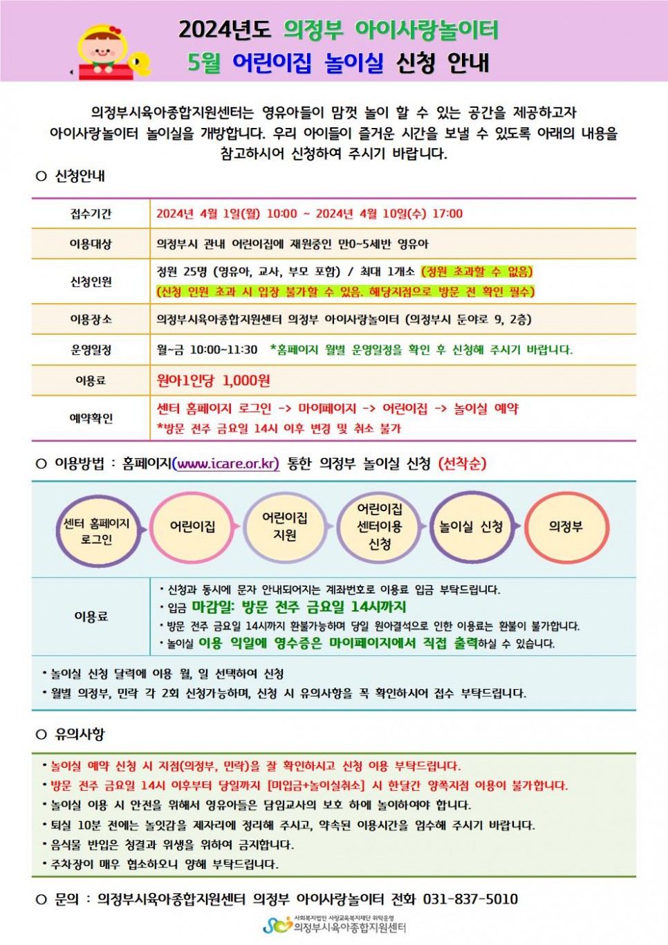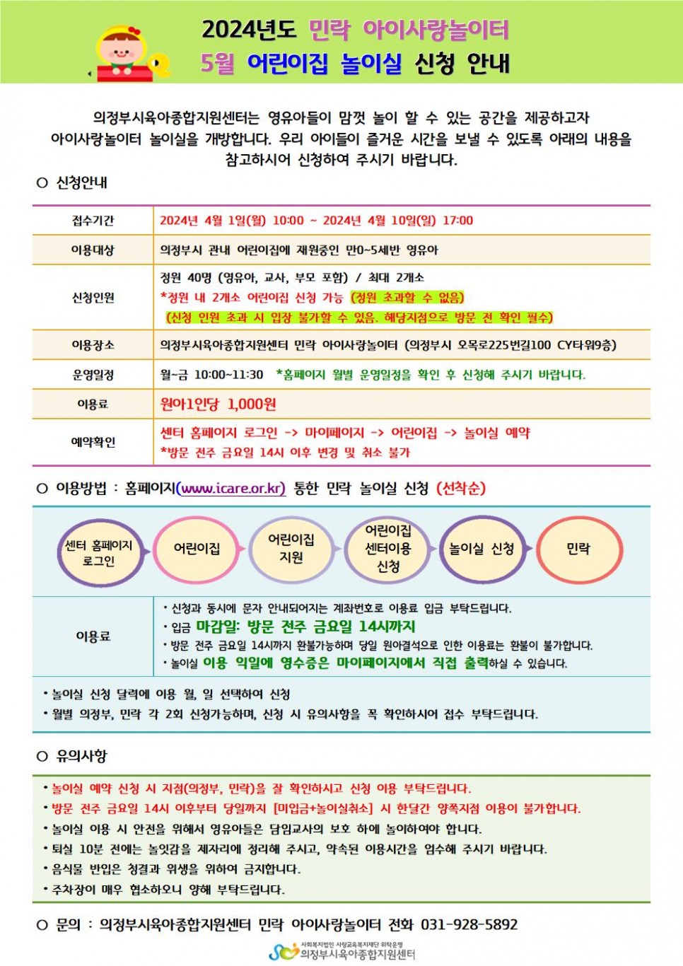 [의정부, 민락] 2024년 5월 놀이실 신청안내