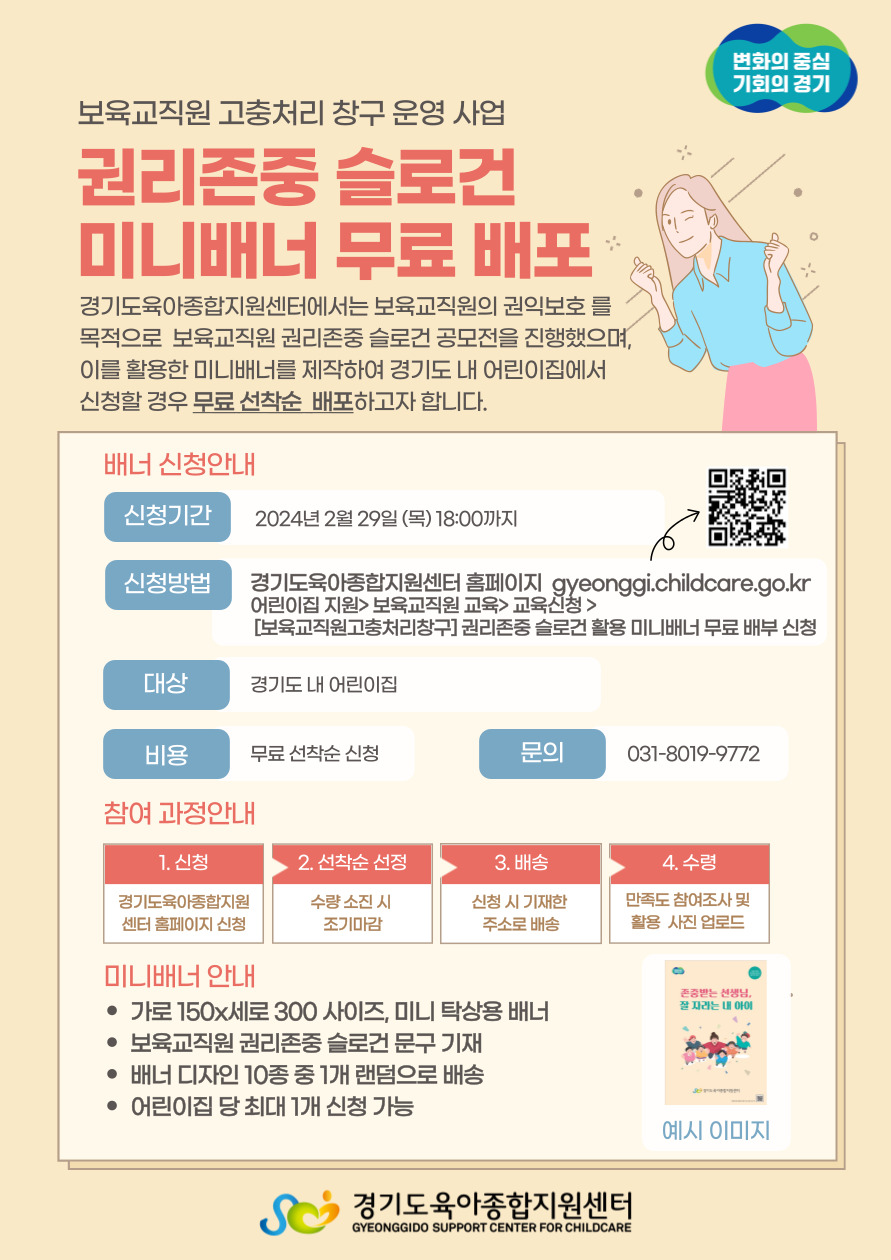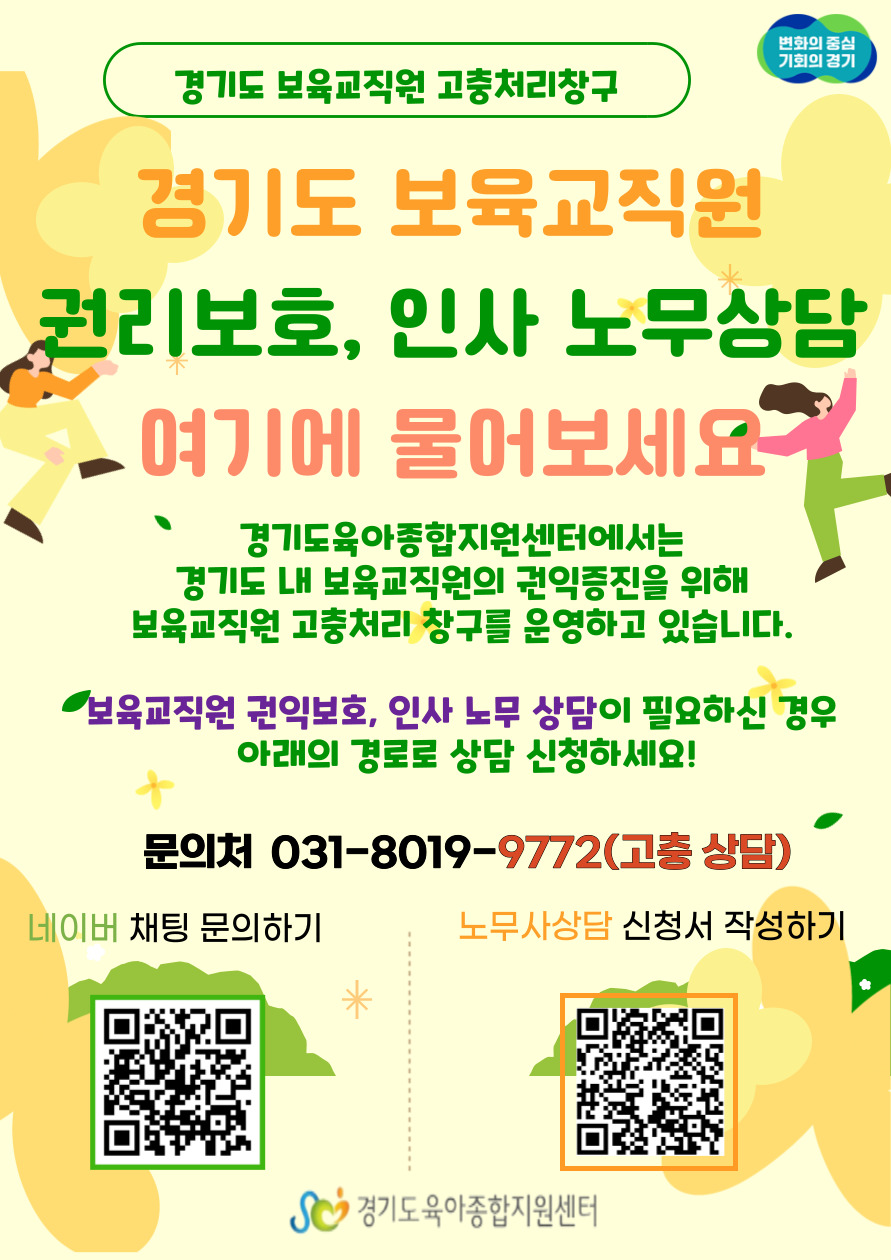 [경기도육아종합지원센터] "보육교직원 고충처리 창구" 상담 및 권리존중 슬로건 미니배너 신청 안내