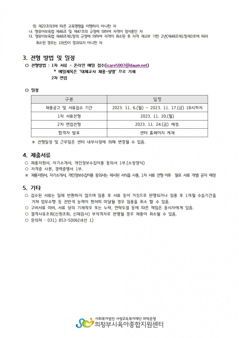 [채용] 의정부시육아종합지원센터 대체교사 채용 공고