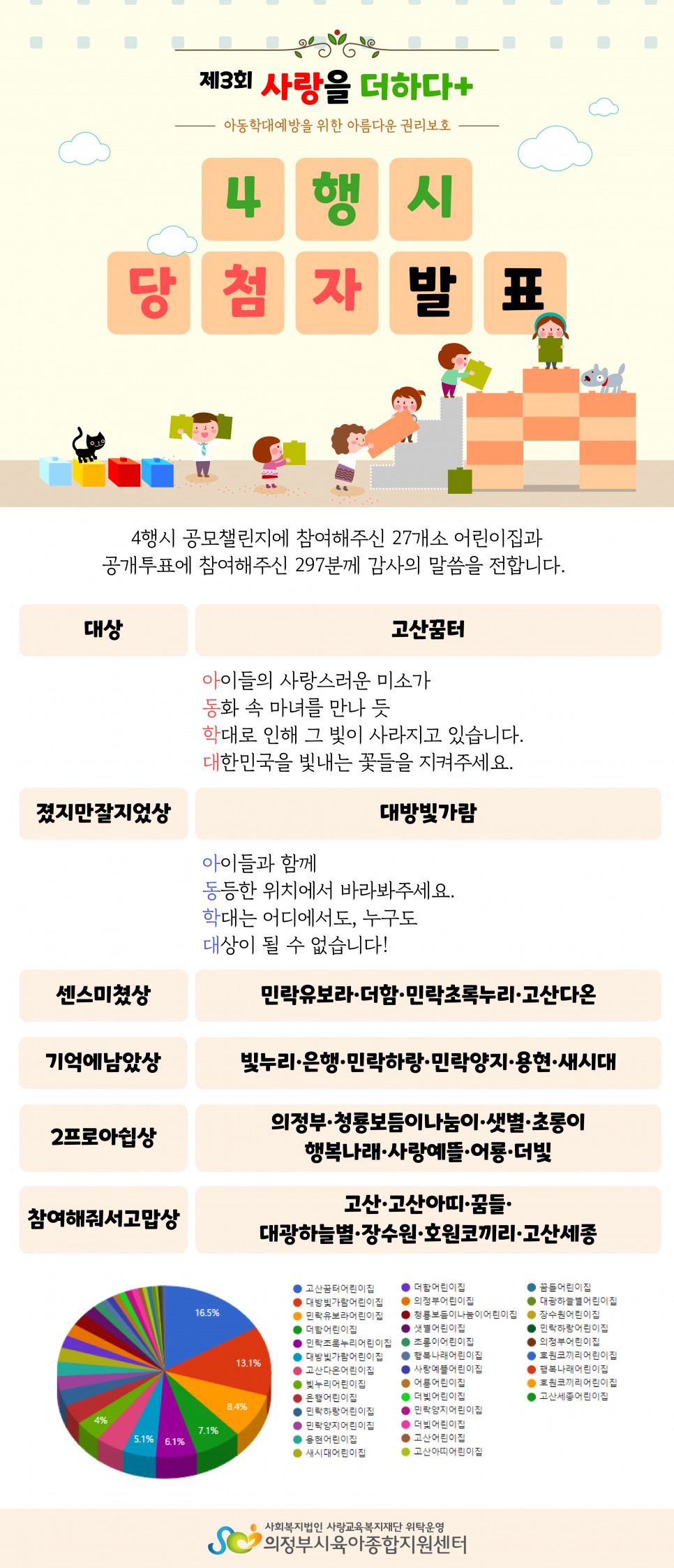 2023년 아동학대예방 캠페인 「사랑을 더하다+」 4행시 공모챌린지 당첨자 발표 > 공지사항