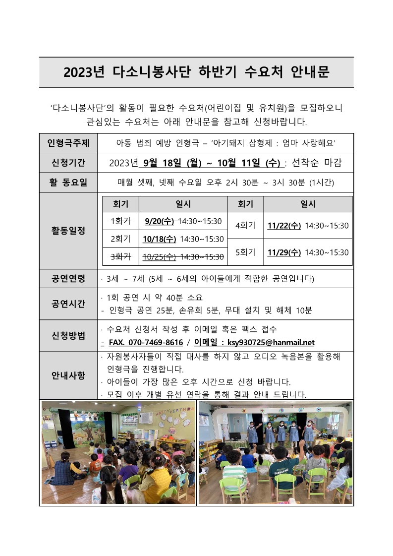 [의정부노인종합복지관] 다소니봉사단 하반기 봉사활동 수요처 모집 안내