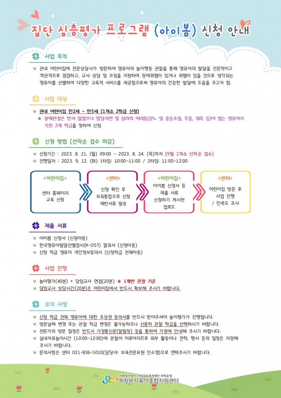 (발달지원) 집단심층평가프로그램(아이봄) 9월 신청 안내 > 공지사항