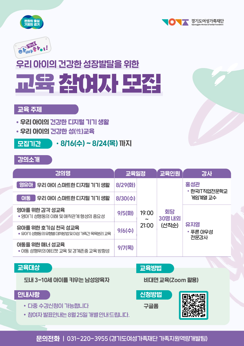 [경기도여성가족재단] 2023년「경기도 아빠하이!」 우리 아이의 건강한 성장발달을 위한 교육 안내 > 공지사항