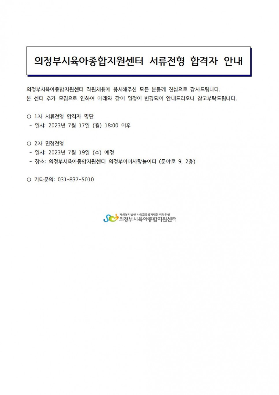 1차 서류전형 합격자 안내(운영요원) 페이지 정보 작성자 의정부센터 댓글 0건 조회 1,502회 작성일 2023-07-11 10:45 본문 추가모집으로 인한 변경사항 확인 부탁드립니다. 목록 이전글[한국보육진흥원] 2023년 한국보육진흥원 적극행정·규제혁신 아이디어 공모전 안내 23.07.11 다음글[달빛어린이병원] 달빛클래스 모집 안내 23.07.07