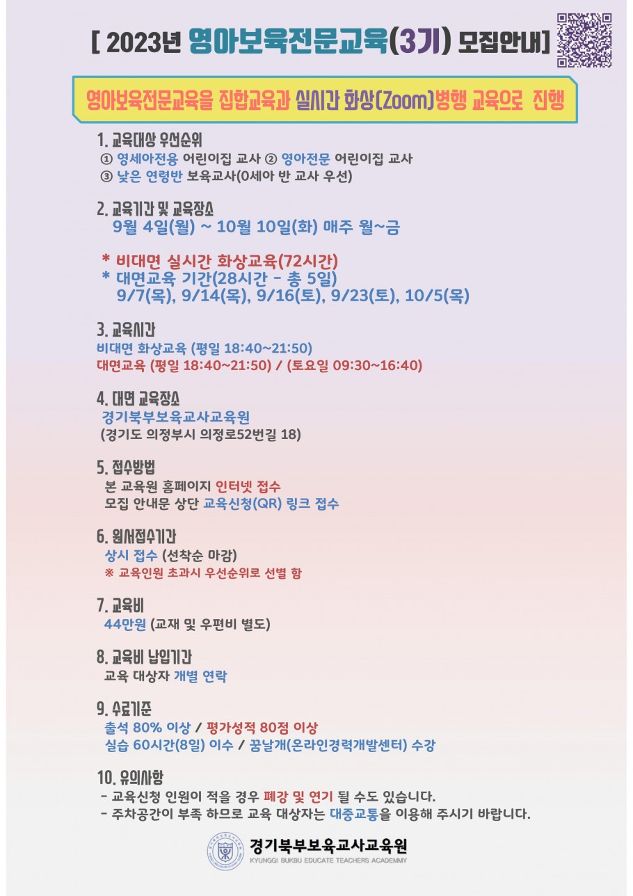 [경기북부보육교사교육원] 2023년 영아보육 전문교육(기본) 3기 모집안내