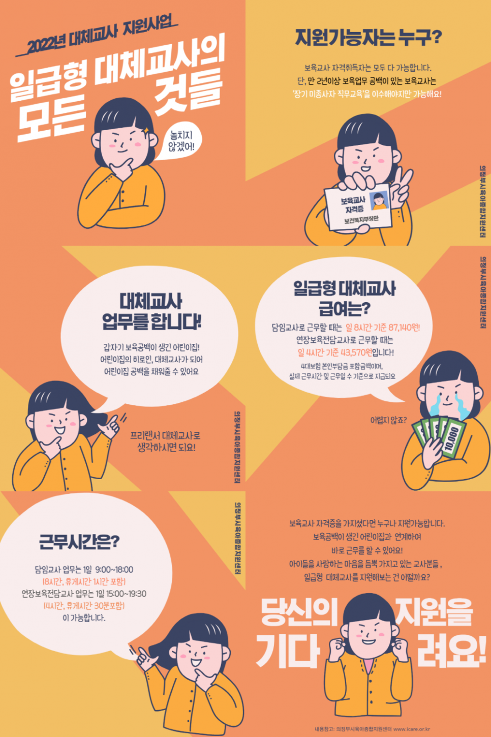 [의정부시육아종합지원센터] 2022년 일급형 대체교사 인력풀 채용공고