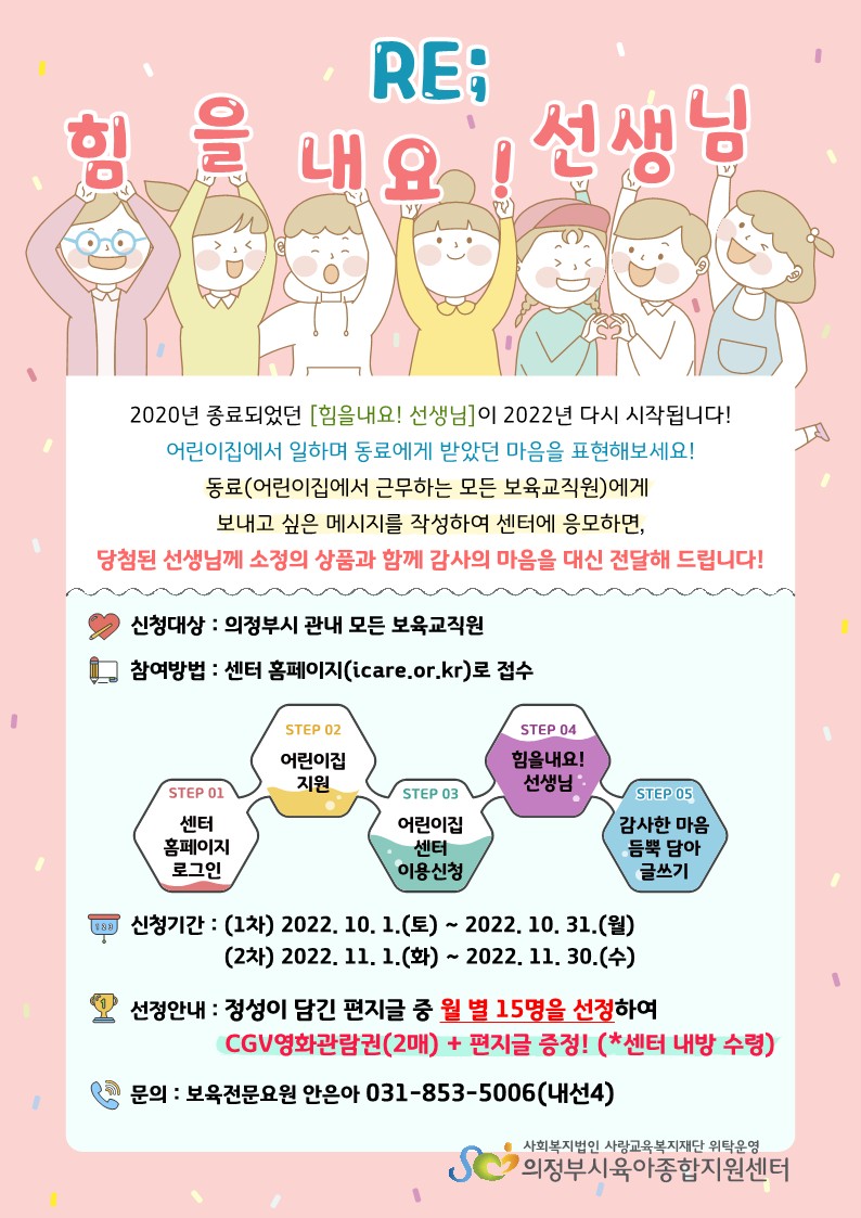 [의정부시육아종합지원센터] Re; 2022년 힘을내요! 선생님 참여 안내 > 공지사항
