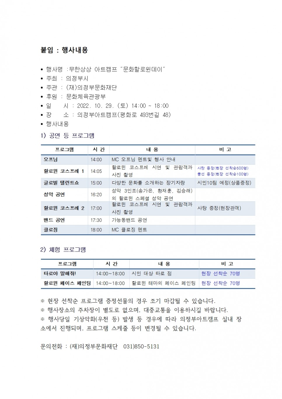 [의정부문화재단] 2022년 무한상상 아트캠프 "문화할로윈데이" 행사 홍보 및 참여 협조 > 공지사항