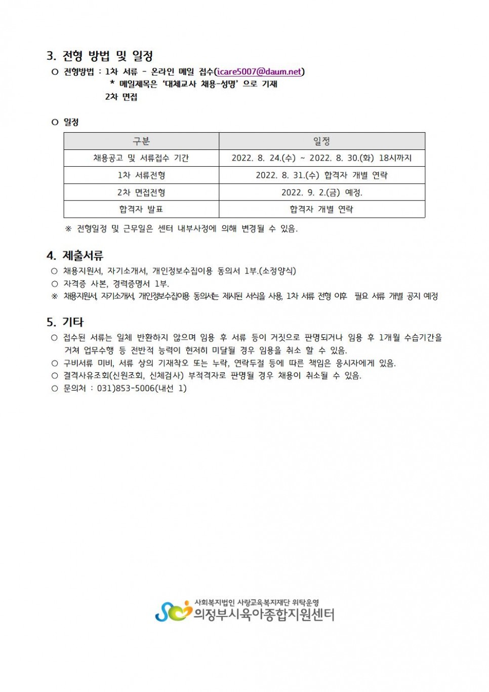 [채용] 의정부시육아종합지원센터 대체교사 채용 공고 > 공지사항