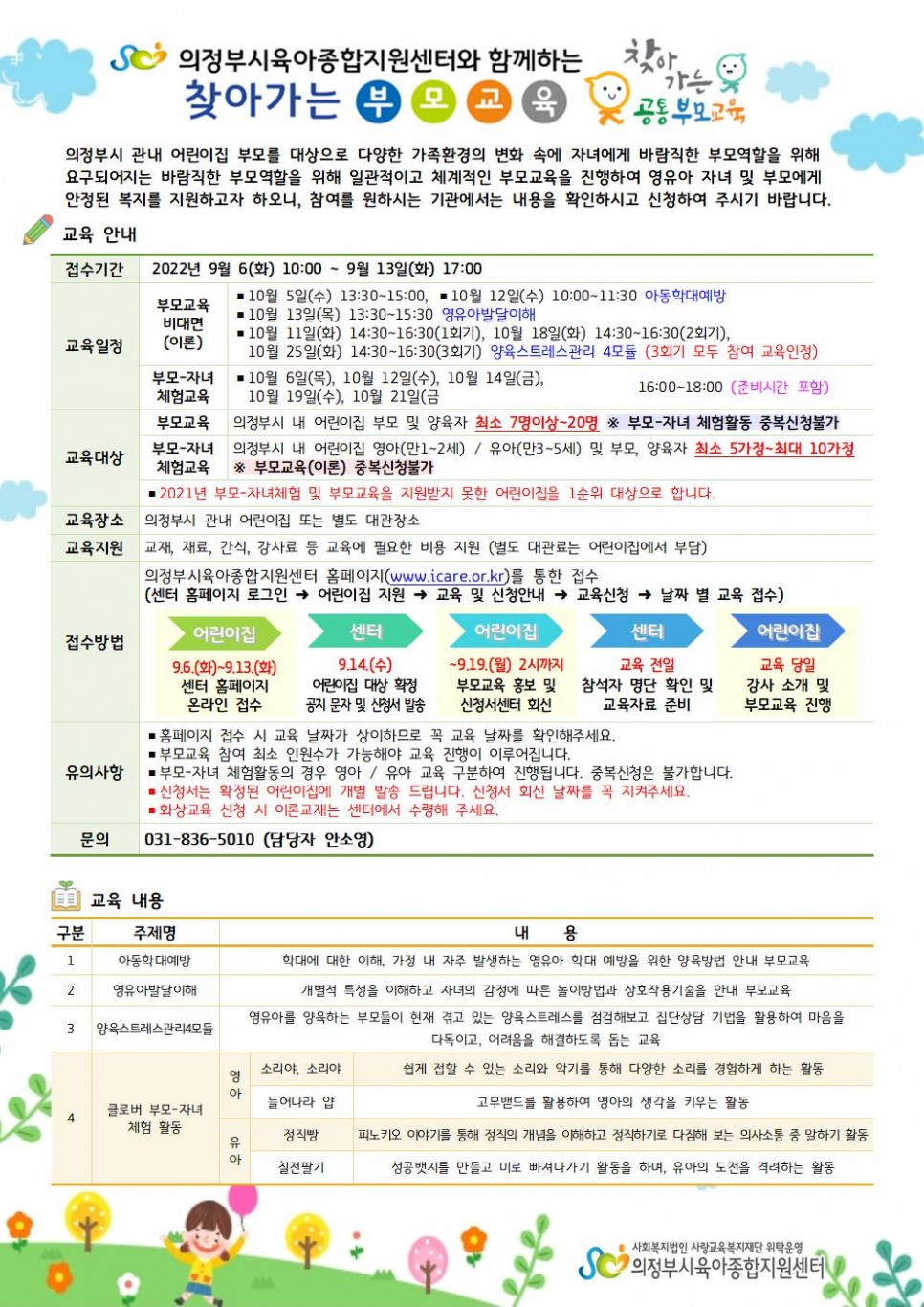 찾아가는 공통부모교육 10월 교육 신청 안내 > 공지사항