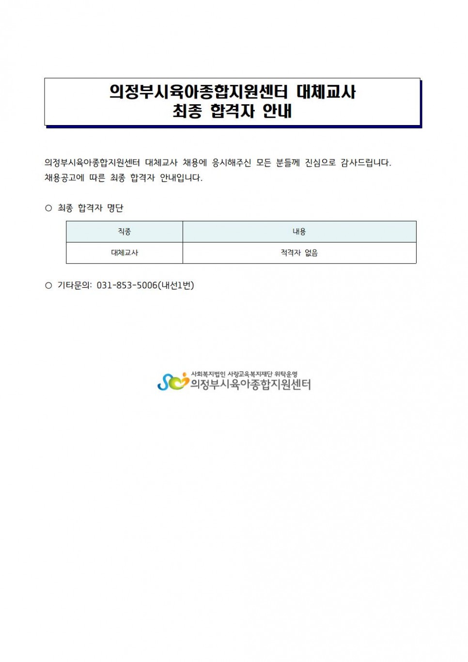 의정부시육아종합지원센터 2022년도 대체교사 최종합격자 안내 페이지 정보 작성자 의정부센터 댓글 0건 조회 1,556회 작성일 2022-07-01 10:16 본문 의정부시육아종합지원센터 2022년도 대체교사 최종합격자 안내 목록 이전글[의정부시육아종합지원센터] 2022년도 대체교사 채용 재공고 22.07.01 다음글(의정부) 찾아가는 양육상담 '지음' 안내 22.06.29
