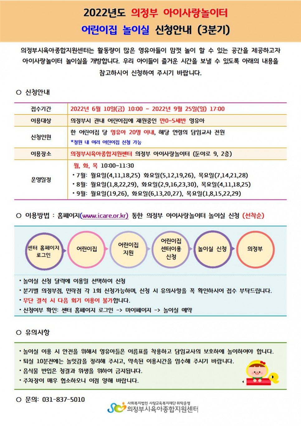 (의정부) 2022년 3분기(7~9월) 어린이집 놀이실 신청 안내