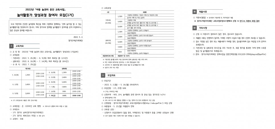 [경기도여성가족재단] 2022년 그림책과 함께하는「놀이활동가 양성과정」참여자모집 안내 > 공지사항