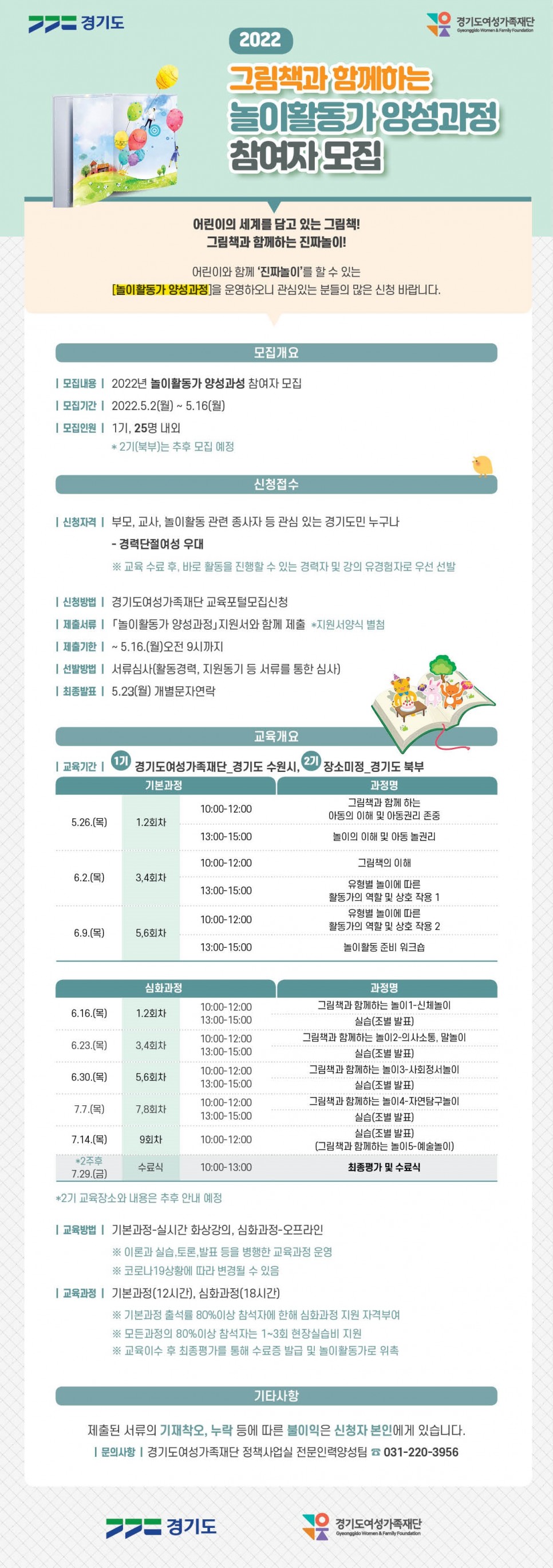 [경기도여성가족재단] 2022년 그림책과 함께하는「놀이활동가 양성과정」참여자모집 안내