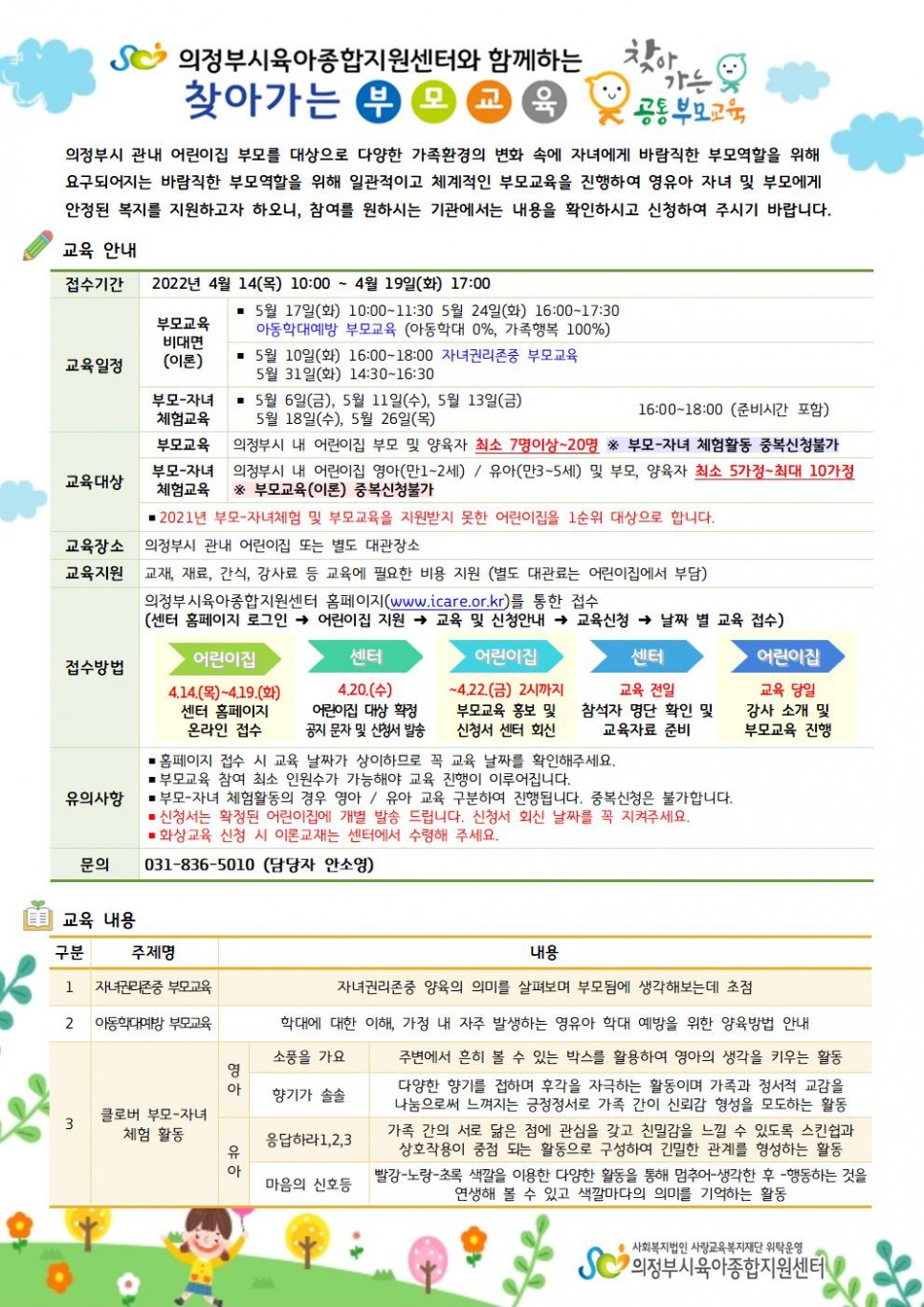 2022년 '찾아가는 공통부모교육' (5월) 신청 안내