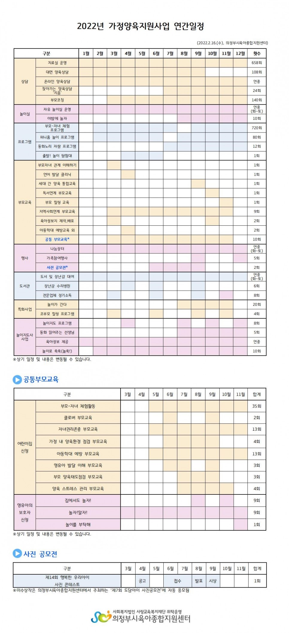 2022년 가정양육지원사업 연간일정 > 공지사항