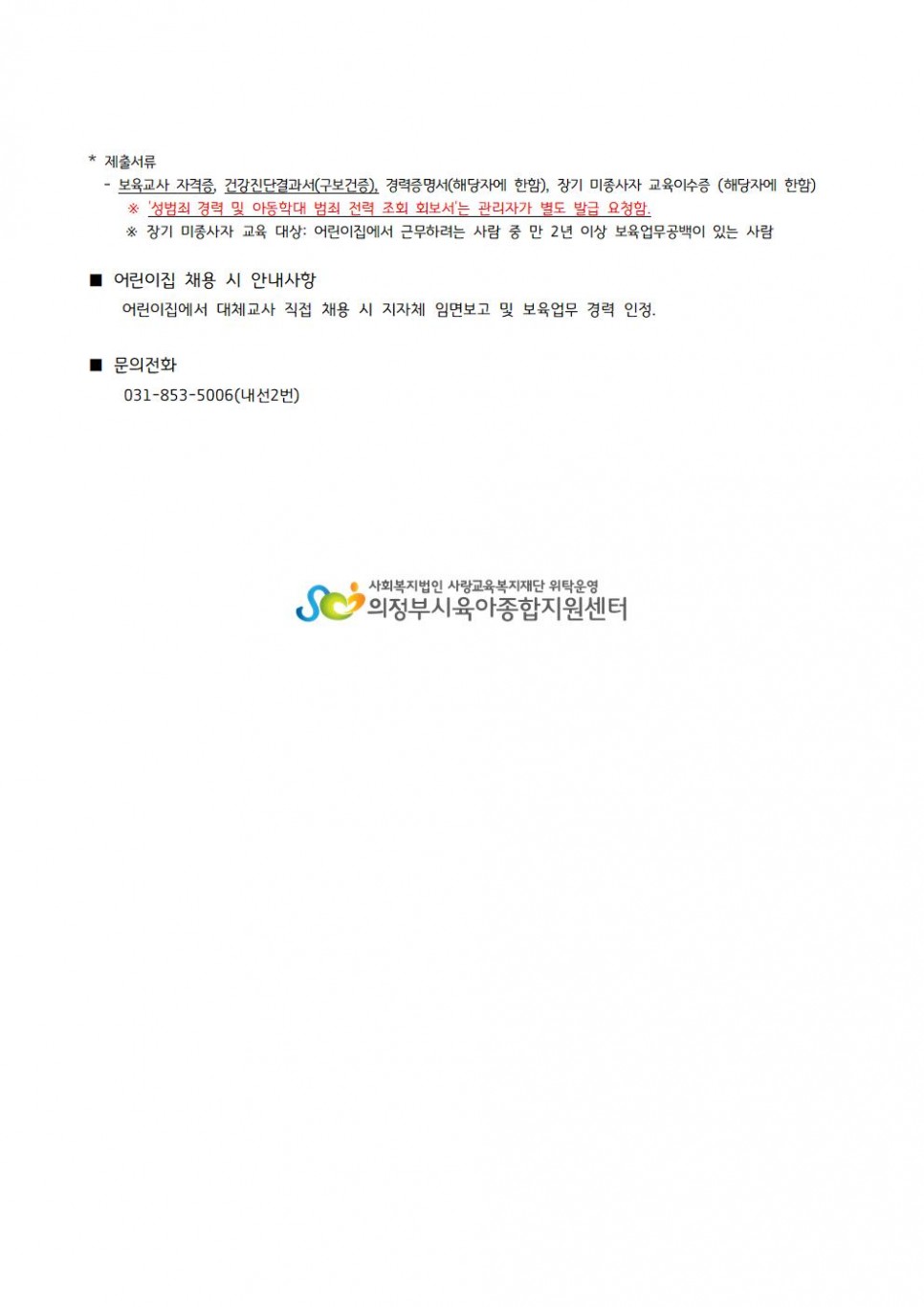 [의정부시육아종합지원센터] 2022년 일급형 대체교사 인력풀 채용공고 > 공지사항