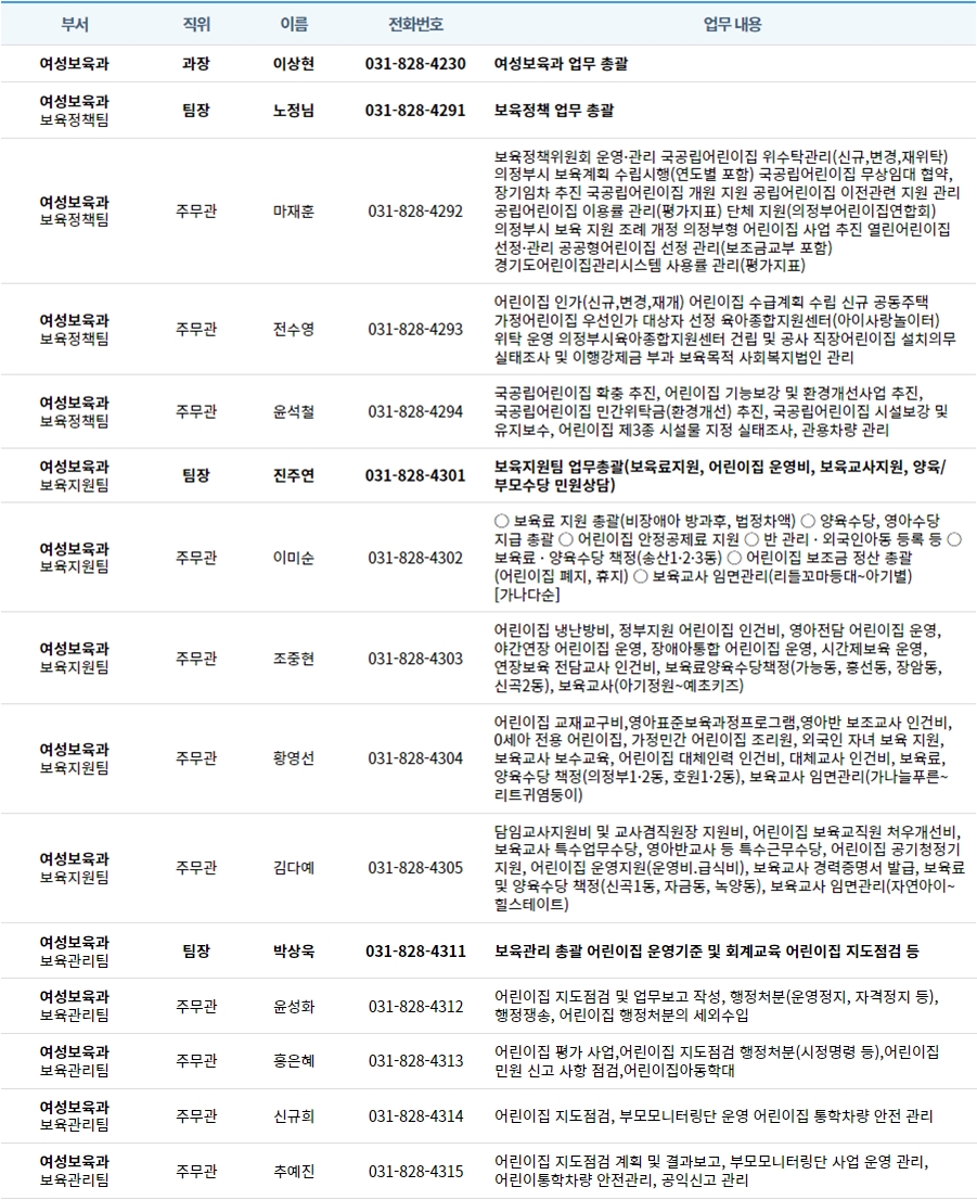 의정부시청 여성보육과 연락처(2023.1. 기준) 페이지 정보 작성자 의정부센터 댓글 0건 조회 3,713회 작성일 2022-01-05 18:05 본문 의정부시청 여성보육과 연락처(2023.1. 기준) 목록 이전글육아종합지원센터 소개 영상 22.01.06 다음글[의정부시육아종합지원센터] 2022년 일급형 대체교사 인력풀 채용공고 22.01.05