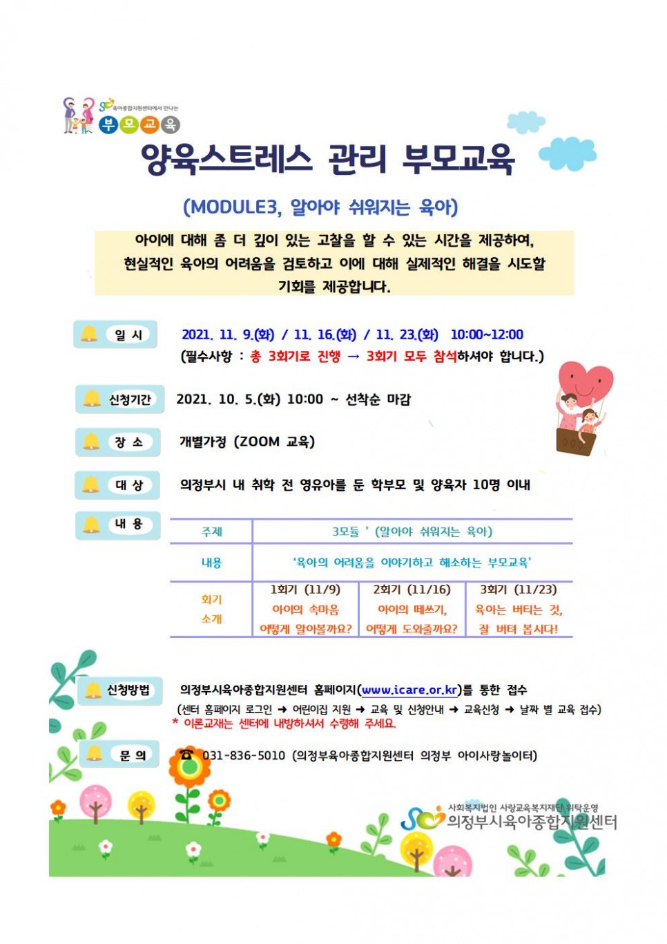 (공통부모) 11월 양육스트레스 관리 부모교육 (3모듈) > 공지사항