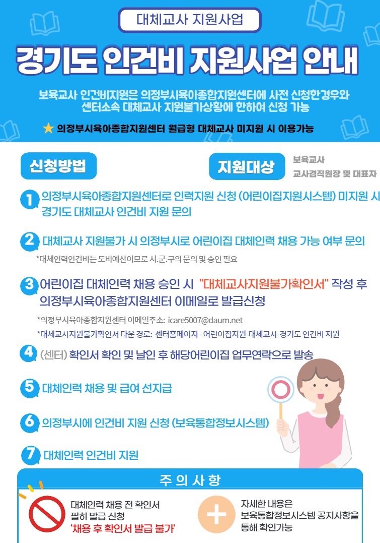 [대체교사 지원사업] 경기도 인건비 지원사업 (어린이집 직접채용 대체교사) 안내문