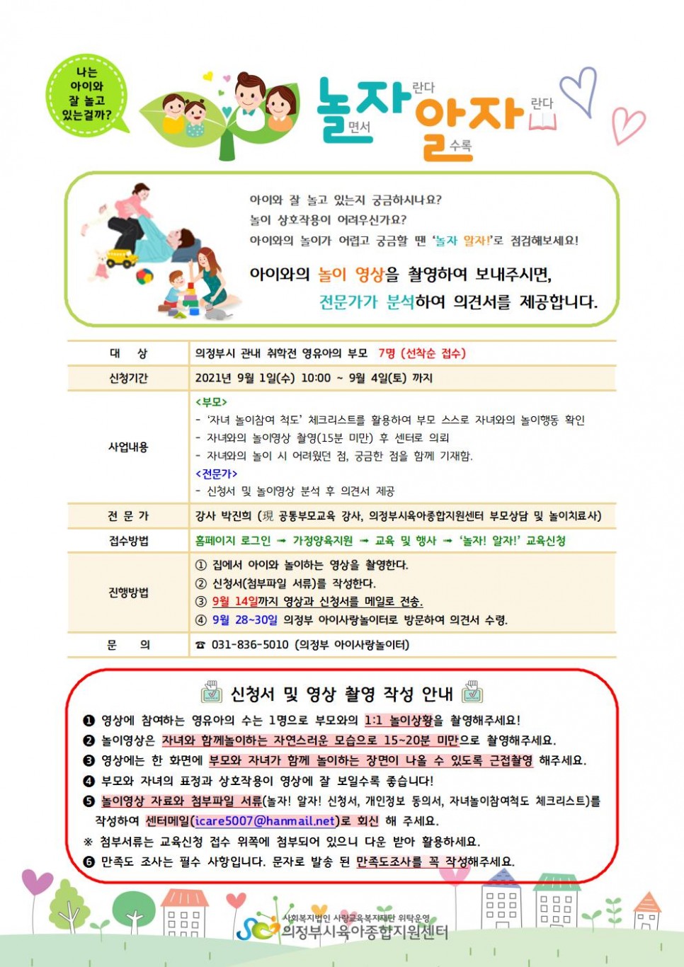 [의정부] '놀(면서) 자(란다)! 알(수록) 자(란다)! (9월) 신청 안내 > 공지사항