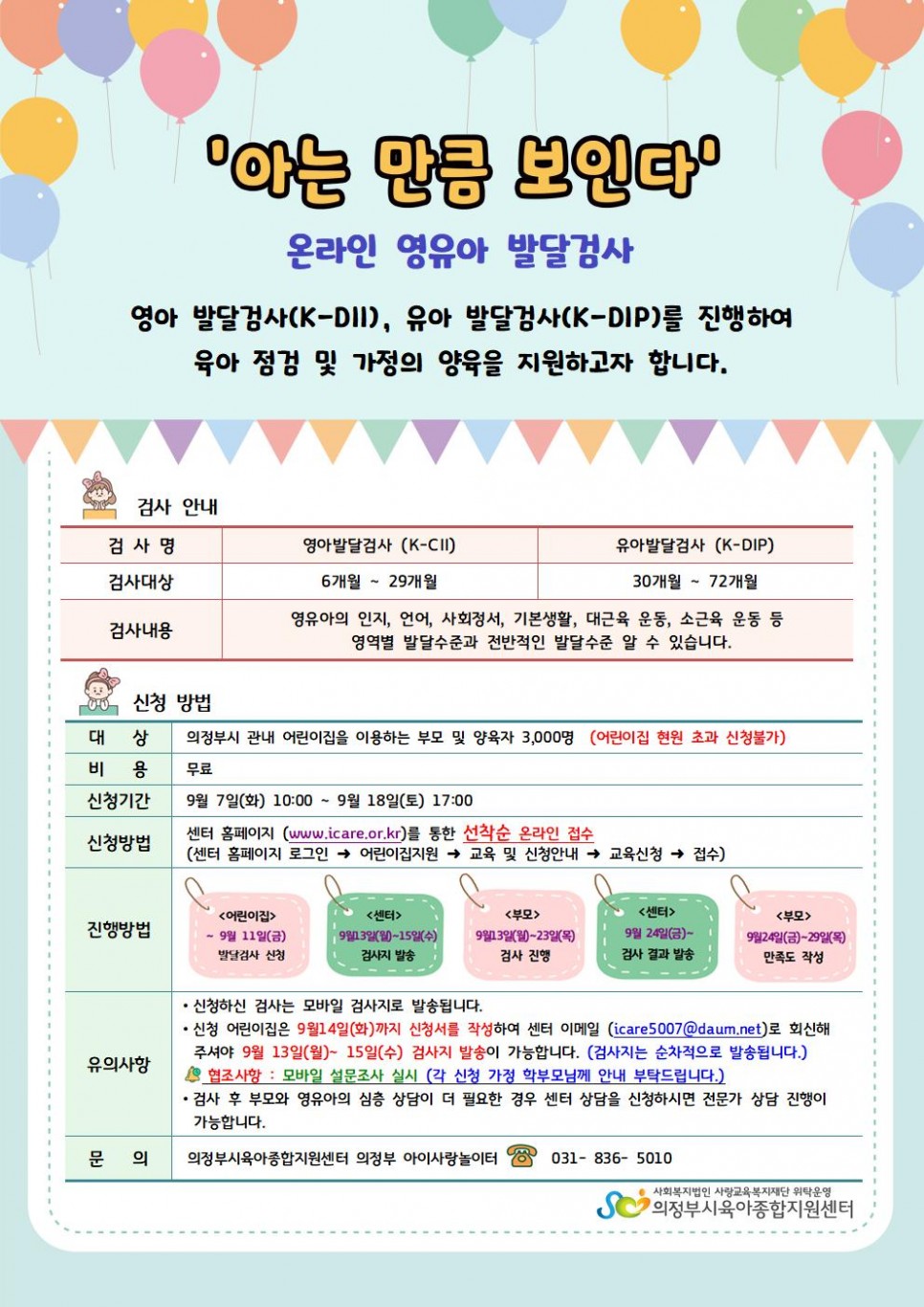 온라인 영유아 발달 검사 (접수 기간 연장) > 공지사항