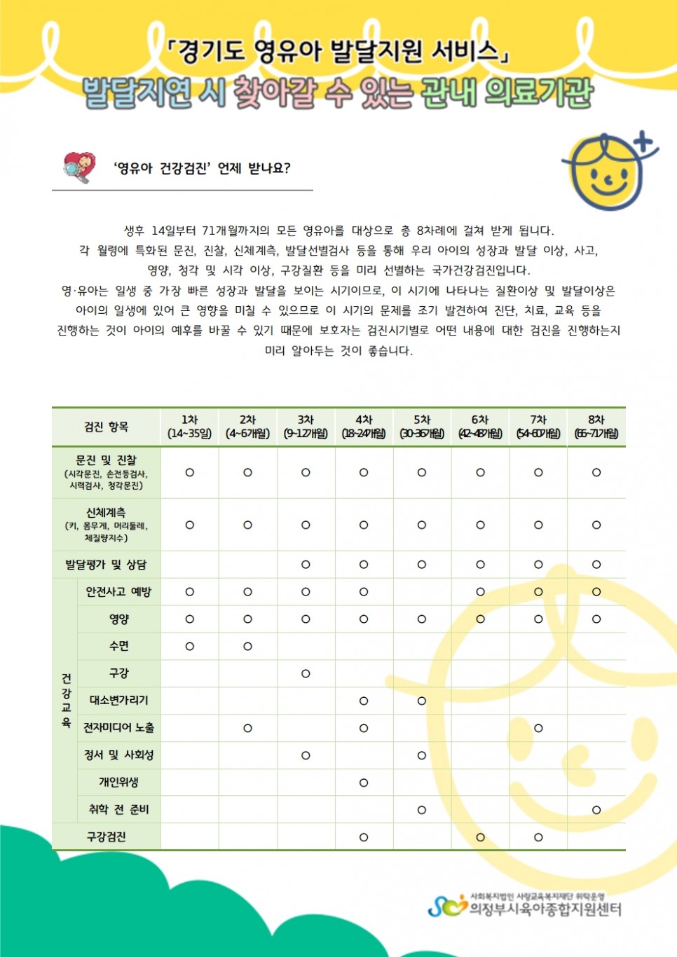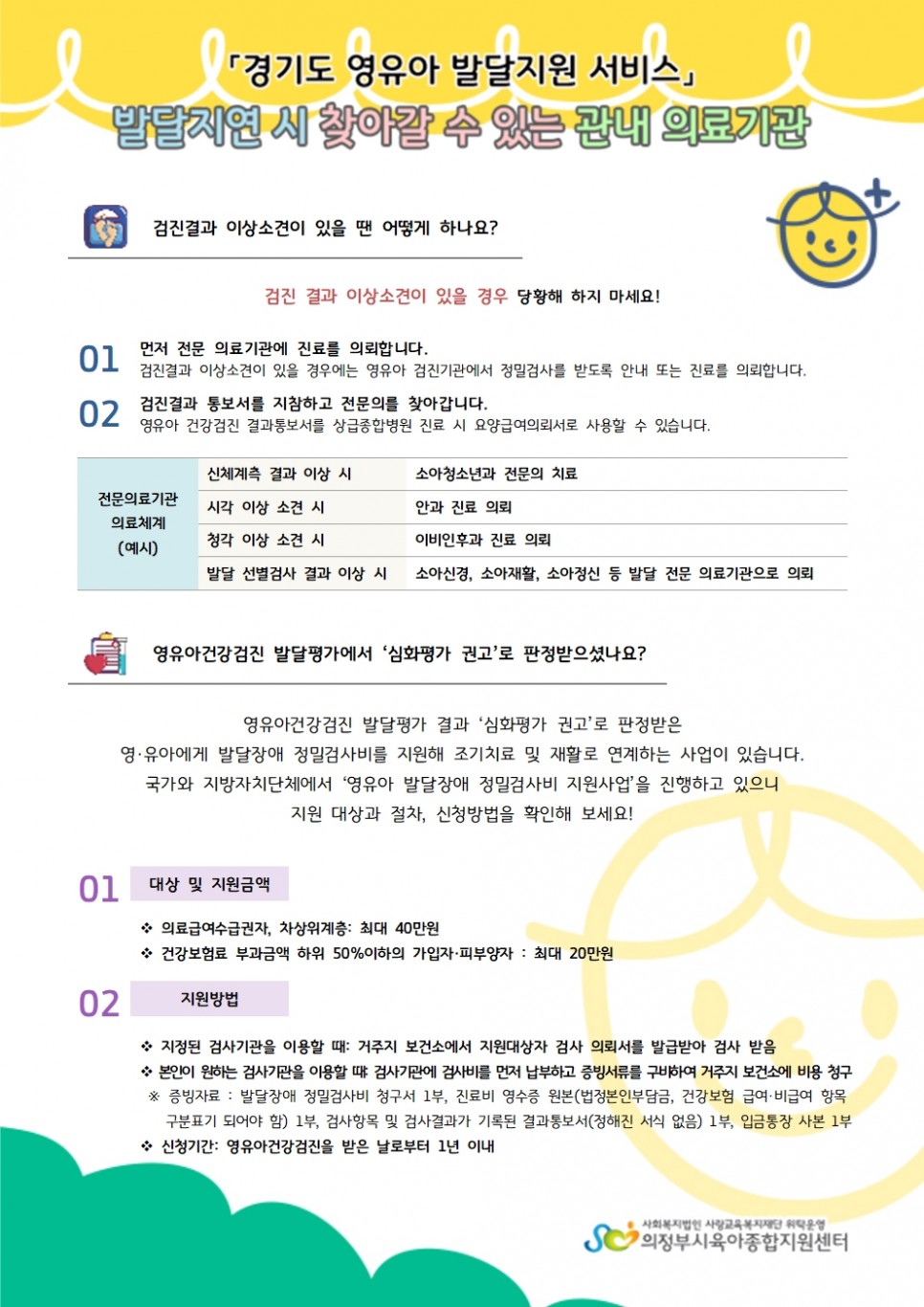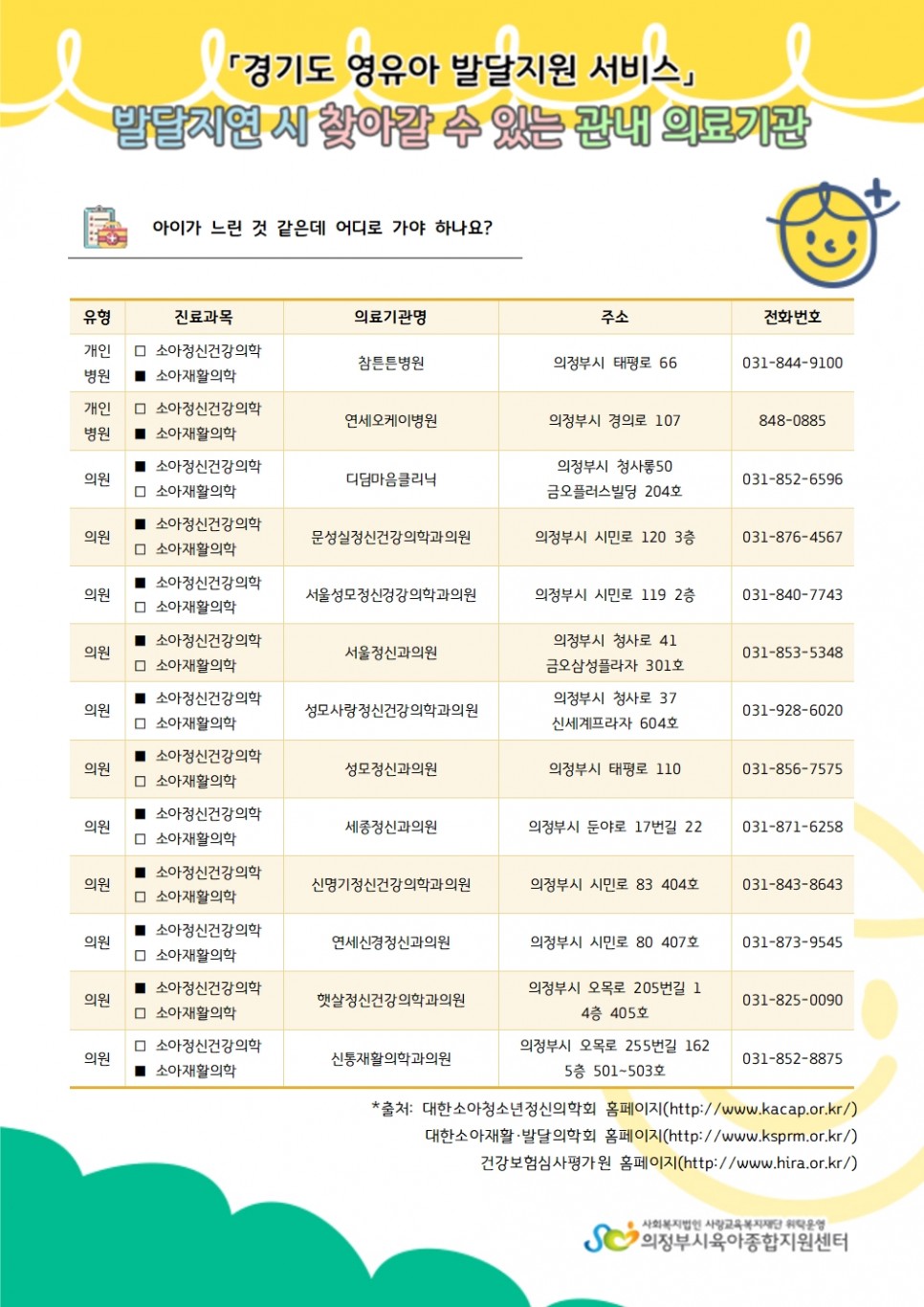 「경기도 영유아 발달지원 서비스」 발달지연 시 찾아갈 수 있는 관내 의료기관 안내 > 공지사항
