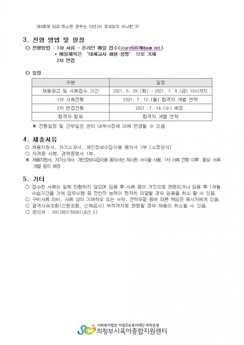 [의정부시육아종합지원센터] 2021년 보육교직원 코로나 19바이러스 백신접종지원을 위한 대체교사 채용 추가모집