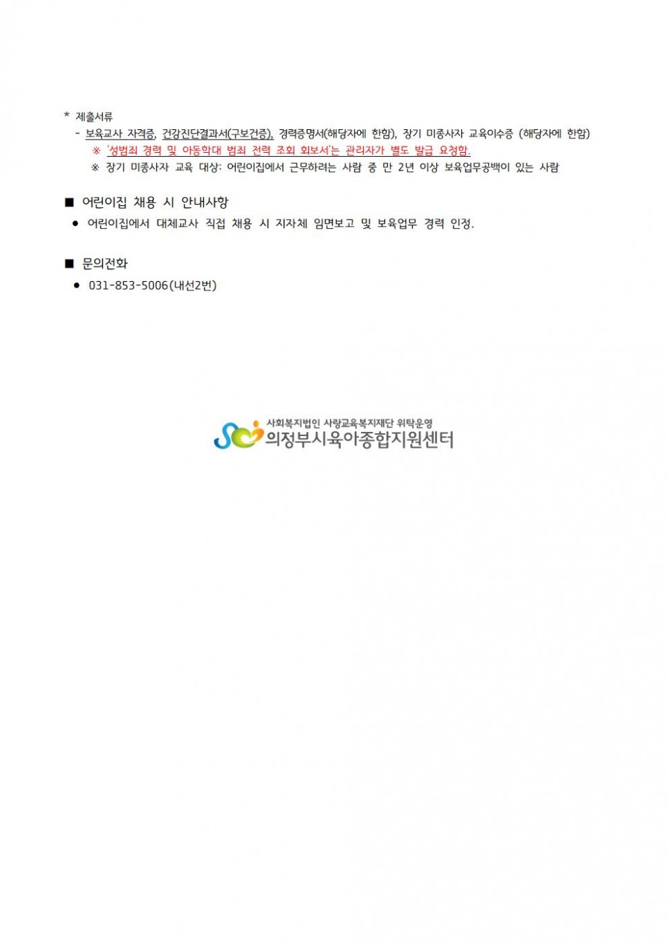 [의정부시육아종합지원센터] 2021년 일급형 대체교사 인력풀 채용공고 > 공지사항