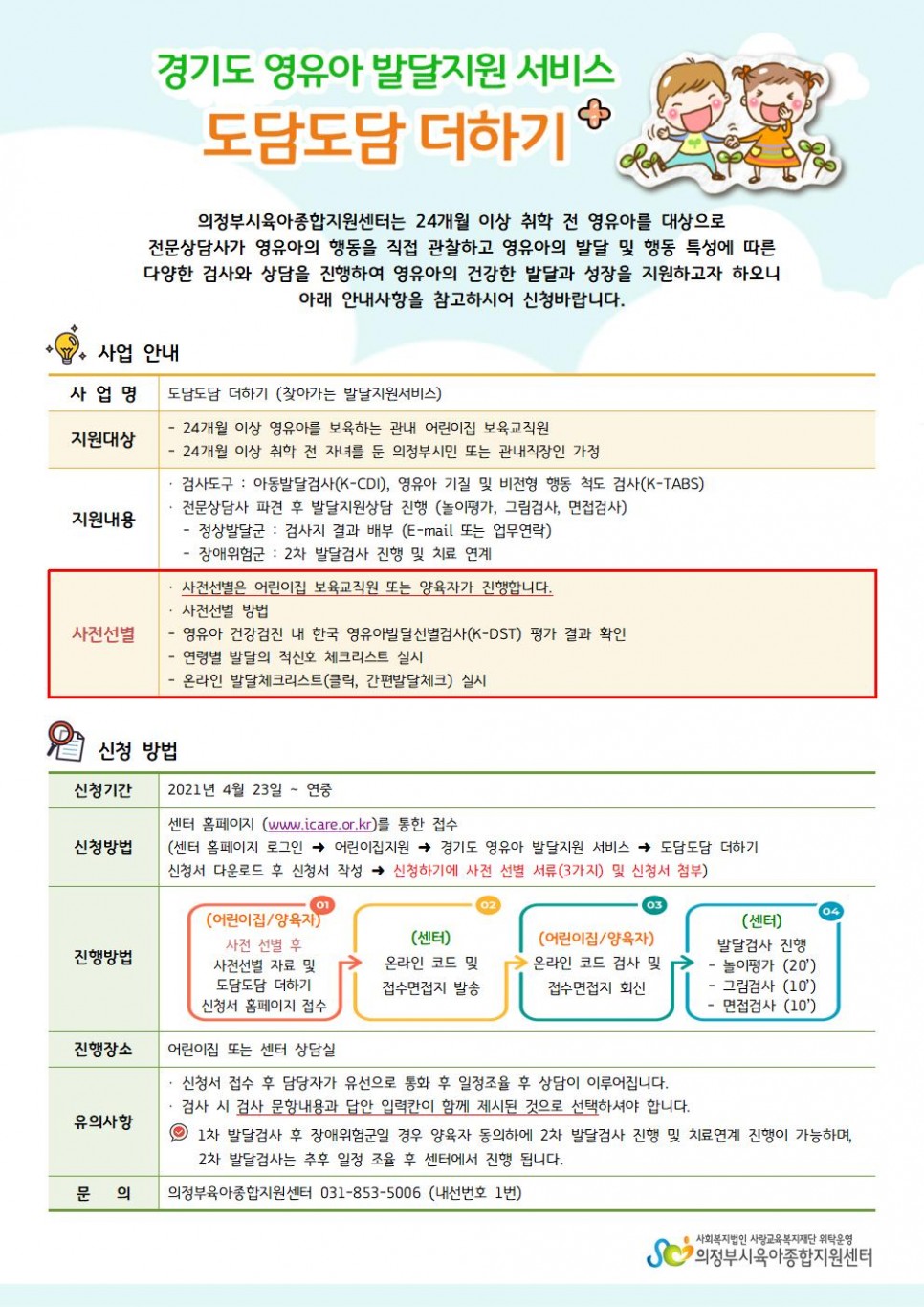 2021 「경기도 영유아 발달지원 서비스」 도담도담 더하기 신청 안내