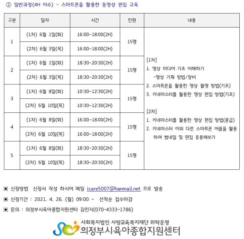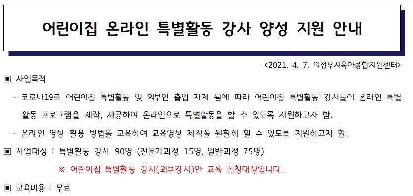 어린이집 온라인 특별활동 강사 양성 지원 안내