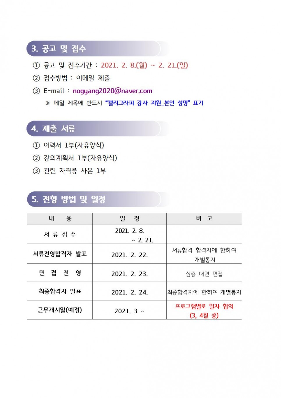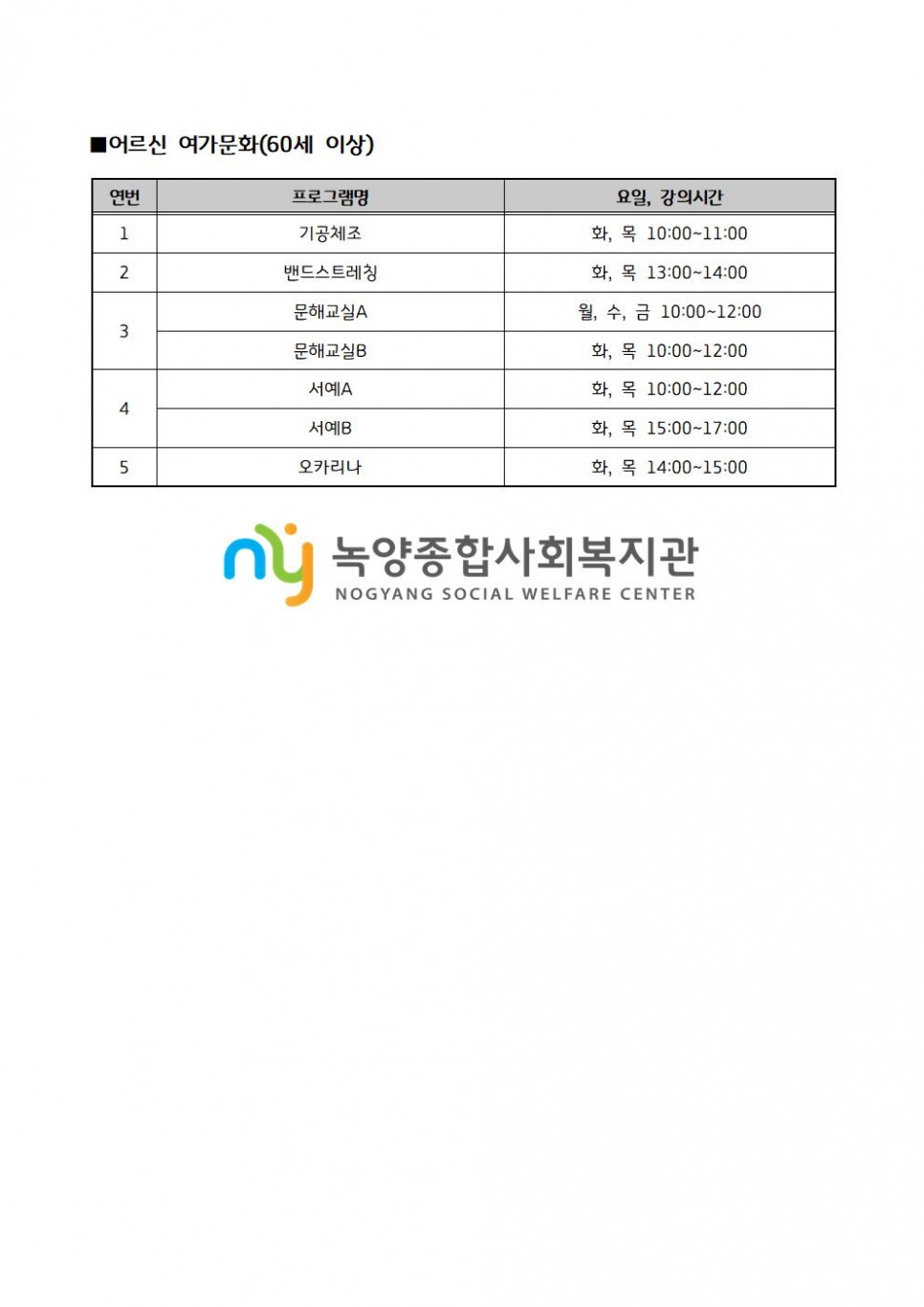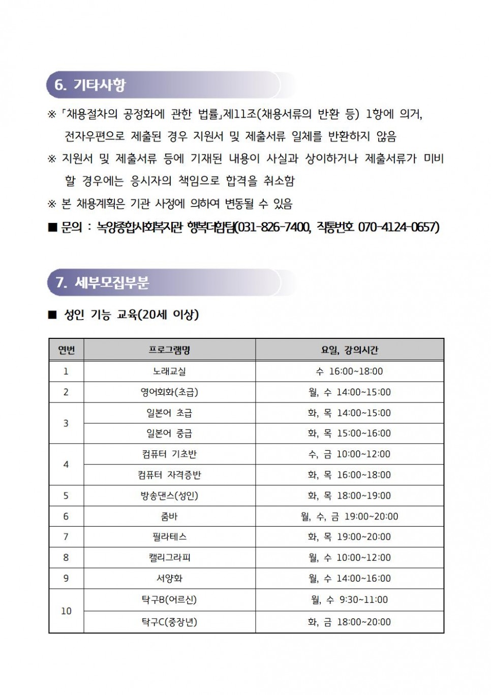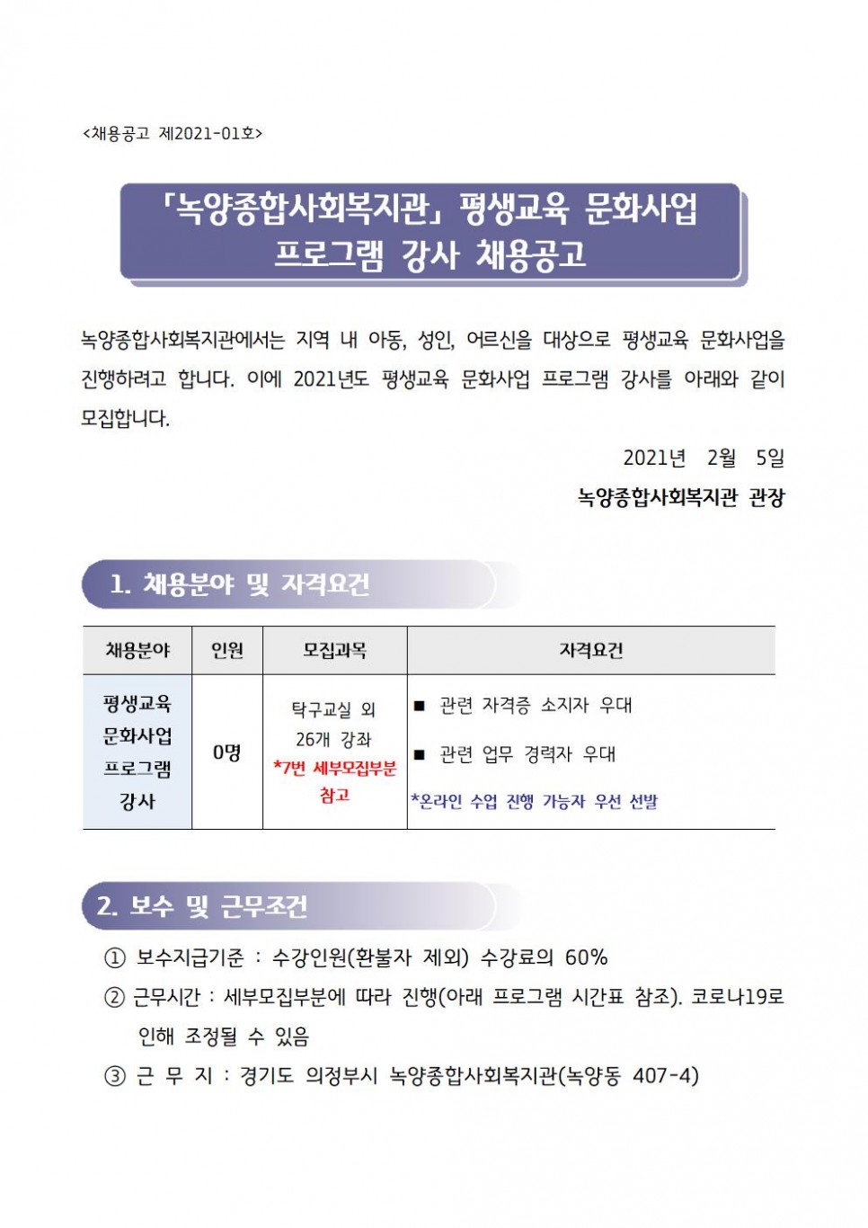 [녹양종합사회복지관]평생교육 문화사업 프로그램 강사 채용공고