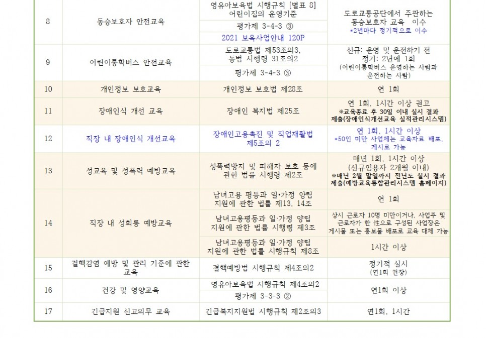 - 어린이집 보육교직원 원아 필수교육 항목21.03.18..pdf (140.0K) 390회 다운로드 | DATE : 2021-06-25 15:23:01